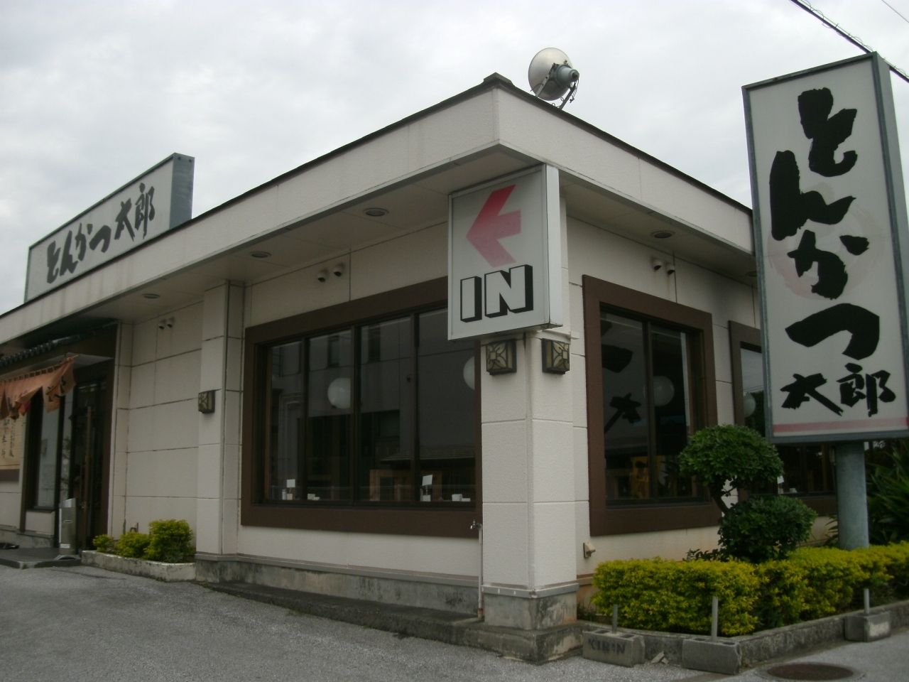 「とんかつ太郎 北谷店」さんは、北谷の国道58号線沿いにあります。広い駐車場があり入りやすいお店です。ロースかつ定食(中)1350円をオーダーすると、すぐに漬物と胡麻が入った擂鉢が出されました。自分で胡麻を擂るシステムです。ほどなく、メインが登場。ソースは甘口と辛口の二種類あり、擂った胡麻を加えるととても良い香りがします。そのソースをタップリつけてロースかつを頂きました。パン粉は粗挽サクサクでカラッと揚がったロースかつはジューシーで柔らかく大変美味しかった。ご飯は白米か10穀米か選べるし、ご飯、味噌汁、キャベツのお代わりは自由だし言うことなし、満足しました。