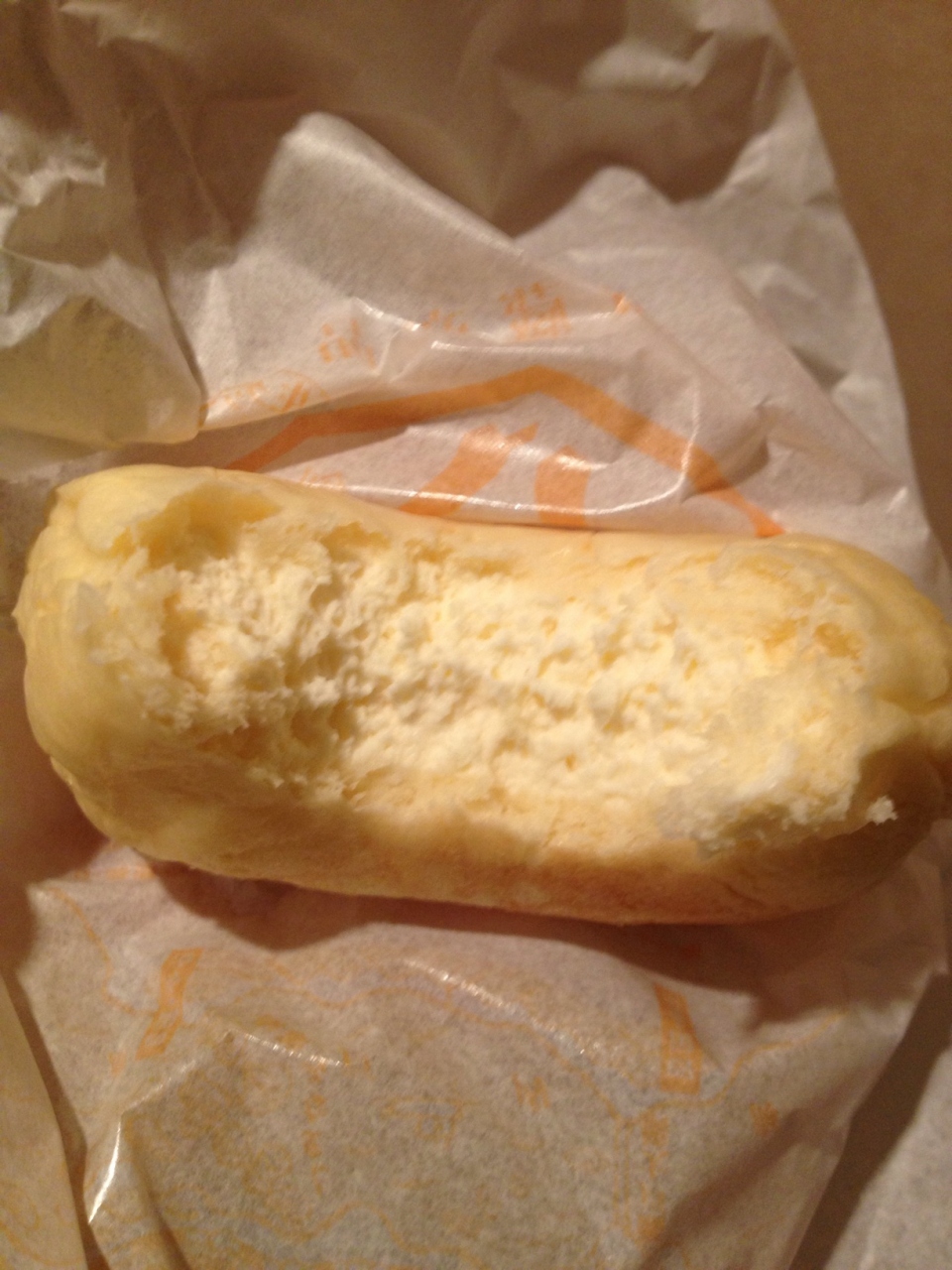 大阪駅あたりを歩いているといつも人が並んでいるお店があるなと思ってました。何だ、クリームパンかと思い買うつもりも無かったのですが、売り切れと書かれている日も多く「そんなに美味しいの?」と気になり始めました。この日はたまたま人が並んでなくてすぐに買えそうだったのでお店に行き2つほど買いました。きなこ味、生クリーム入りにして先に生クリームのを食べたら何これ?うまーい!!感動しました。もう一つのきなこ味は翌日に食べようと冷蔵庫に入れておいたら食べるのを忘れてしまい、誰かに食べられてしまいました。残念。