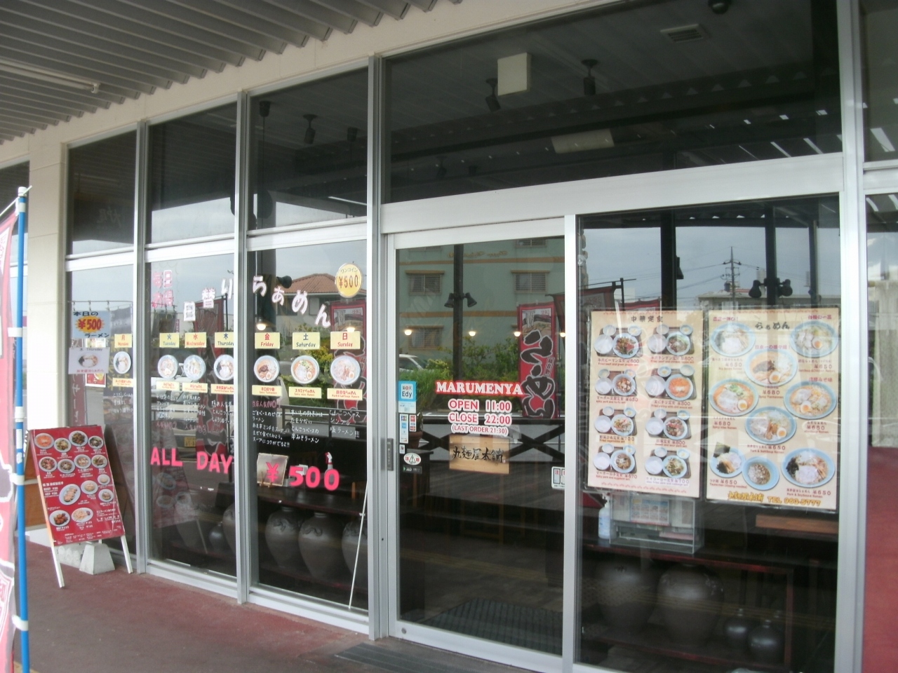 「丸麺屋本舗 」さんは、国道58号線、“大湾”の信号から西に1?足らず入ったところの、読谷のマックスバリュ敷地内にあります。読谷に行く途中にランチのために寄せてもらいました。家内ともども、辛口坦々麺680円をオーダー。しばらくするとラーメンが到着、トッピングはそぼろ肉とネギ、卵、メンマ、麺は中太麺。甘辛のそぼろ肉をスープに溶かして頂くと深い旨みと、辛さがマッチしてスープは絶妙の味でした。麺もコシがあり大変美味しく頂きました。