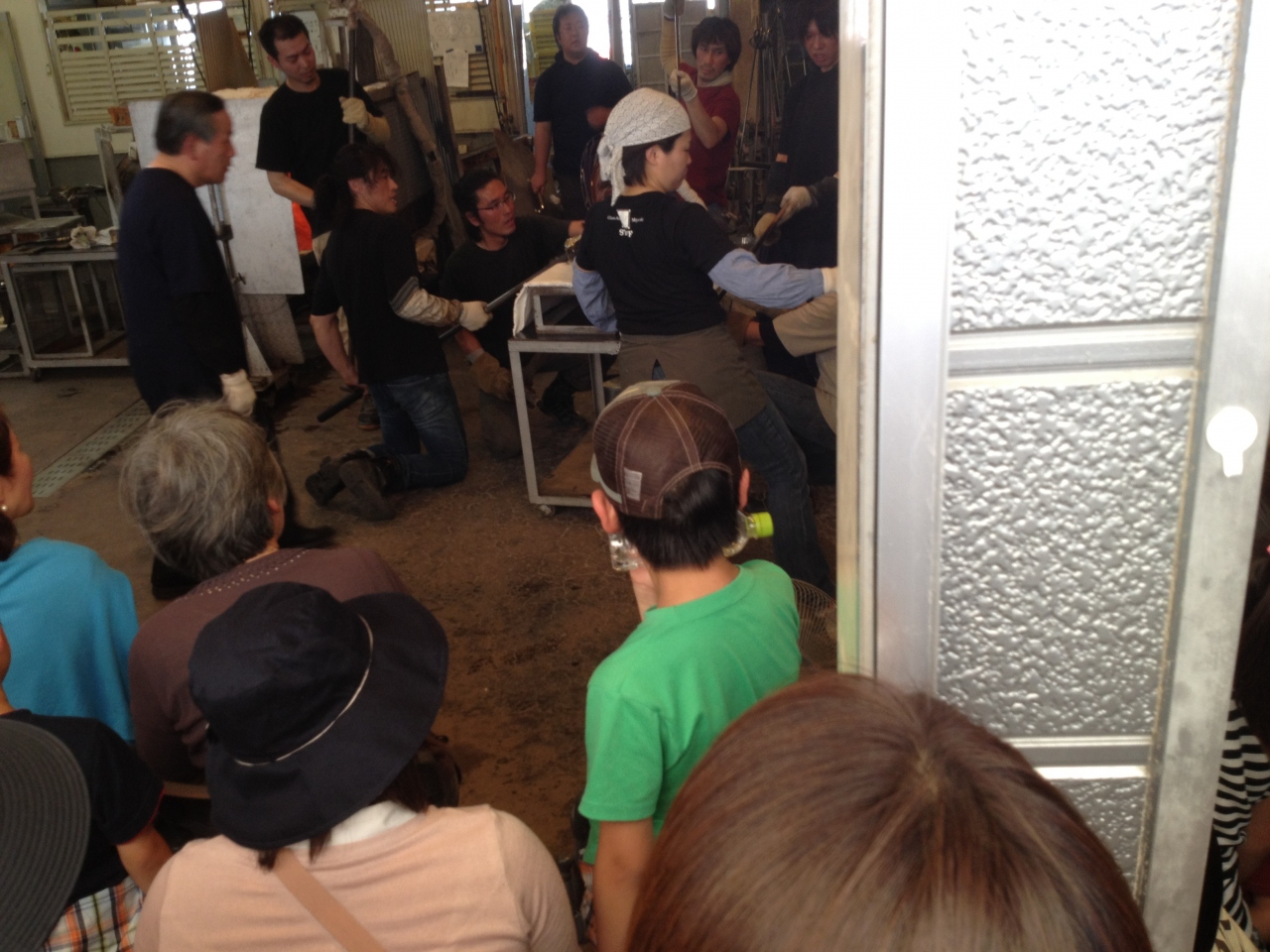 観客は窓の外から見るのですが、そこまで釜の熱風が伝わります。ものすごく熱いです。