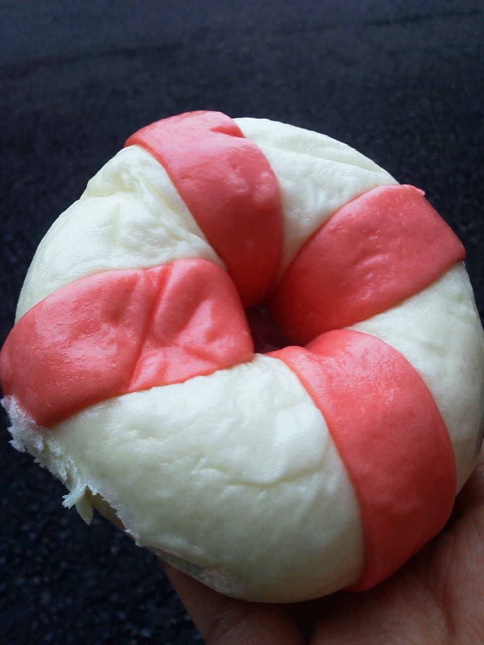 浮き輪のような形の中華まんで、見た目も可愛く、えびがたっぷりでおいしかったです。さすが人気商品!