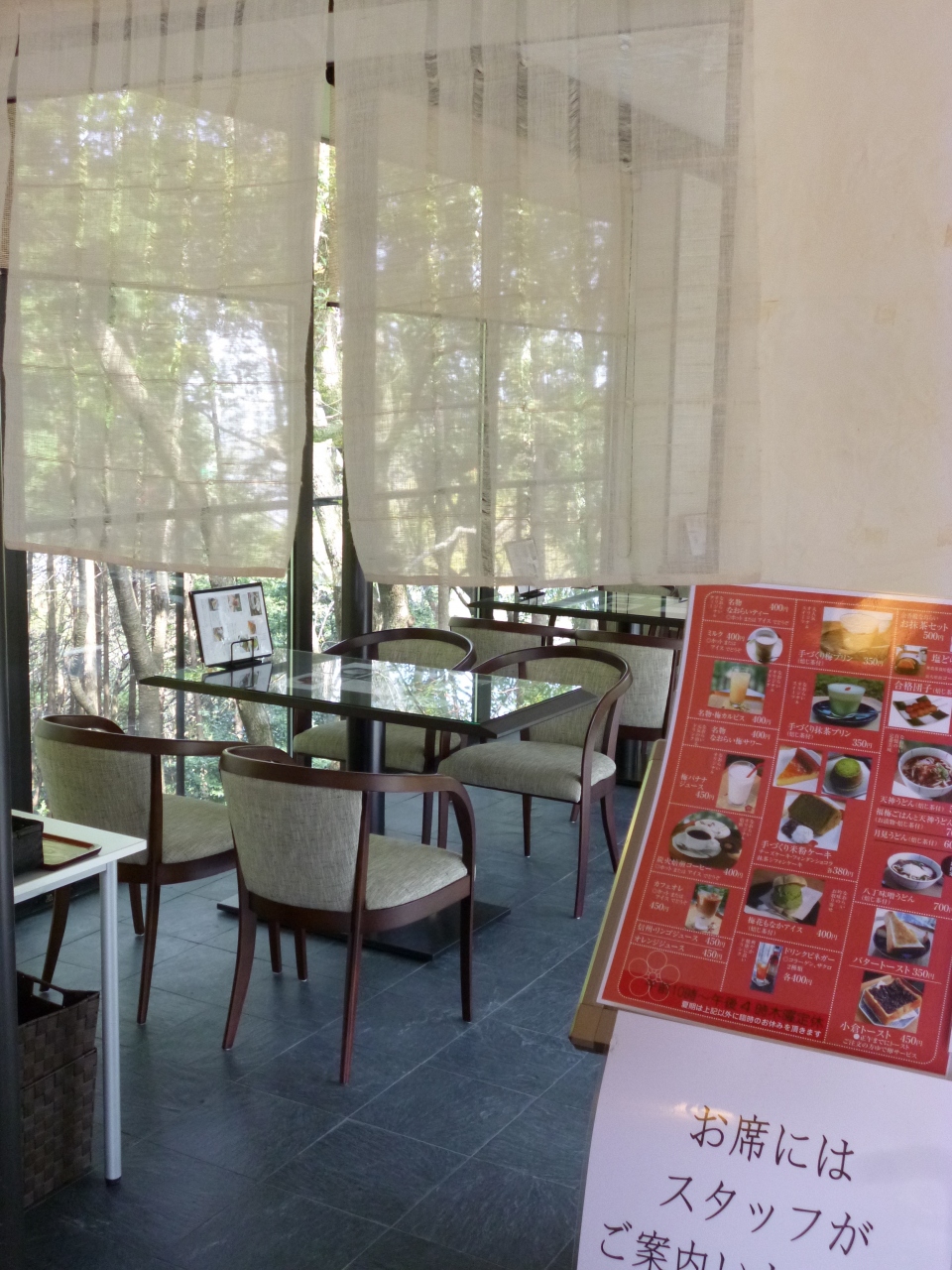 カフェと御守りや雑貨、お菓子の販売スペースもあって、本殿の東の丘には梅苑もあることからメニューには梅プリンや梅カルピスがありました。