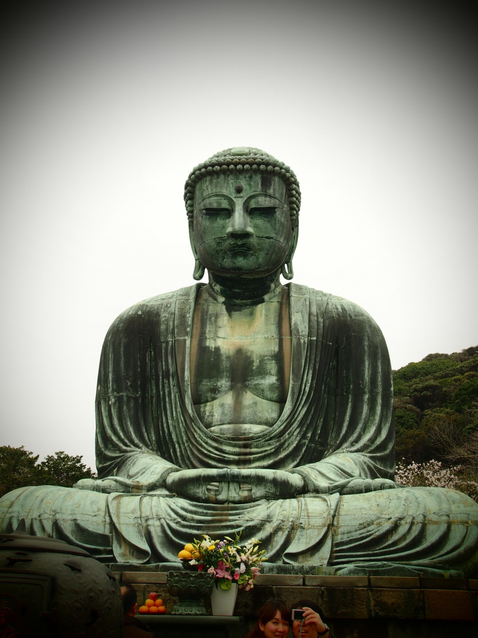 小学校の修学旅行で来て以来、20年以上ぶりの再訪でした。 でーんとそこに座り、750年以上も私たちを見守ってきてくれた鎌倉の大仏様。 今でもなかなか凛々しいお顔です。 観光スポットとしても鎌倉で1-2位を争うくらい有名な場所なので、観光客もいっぱい! 観光バスもいっぱいでした!