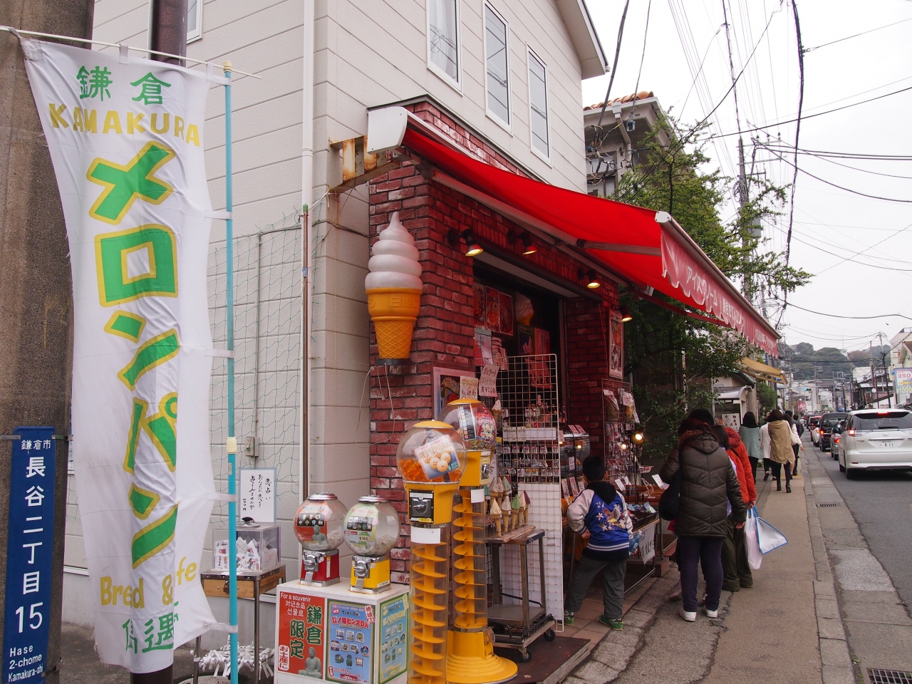 江ノ電の長谷駅を降りて数分の場所にあるお土産屋さん。 メロンパンやカレーパン、アイスなども店先で売ってて、食べ歩きするのに寄りやすいお店です。 メロンパンは何種類もあり、私はチョコチップが入った物を買ってみました。 形がユニークでした。
