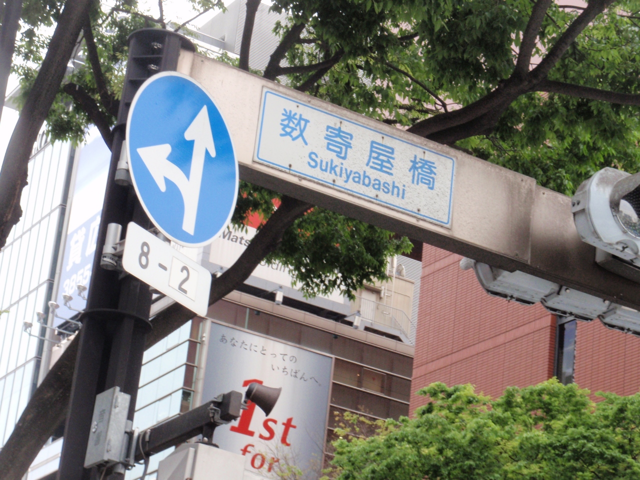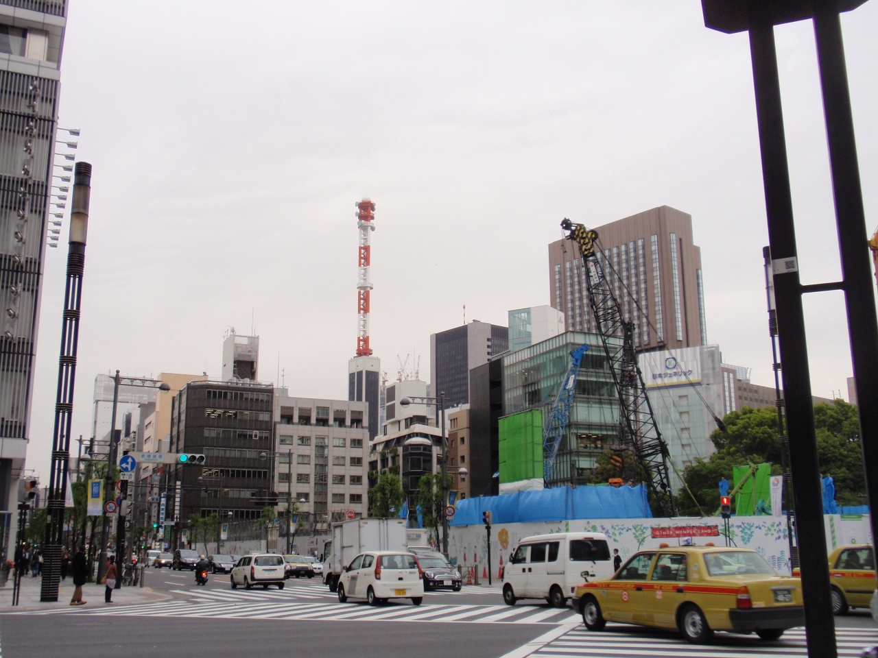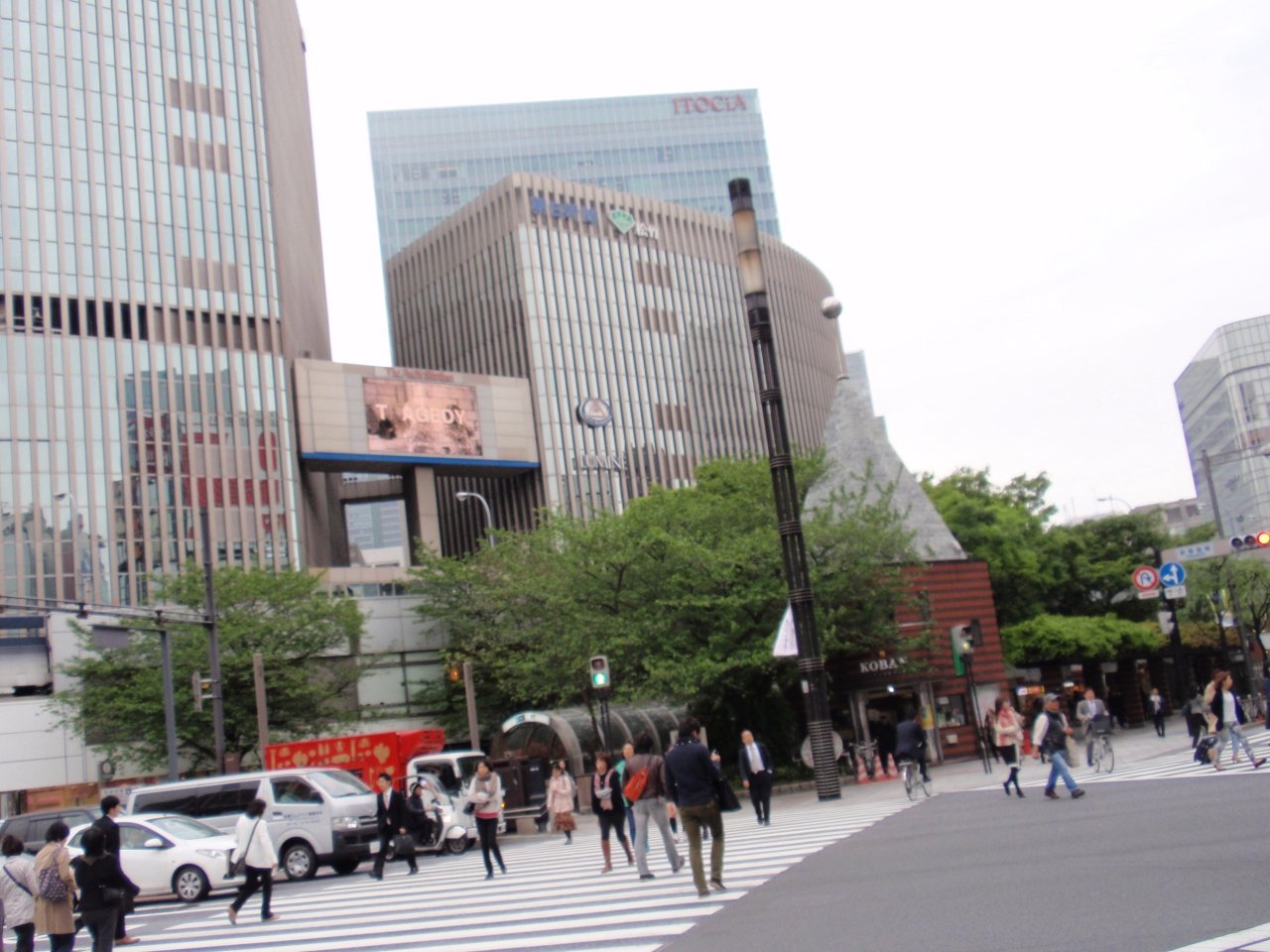 晴海通りを東に向かうとすぐに銀座で、数寄屋橋交差点では多くの人が行き交います。