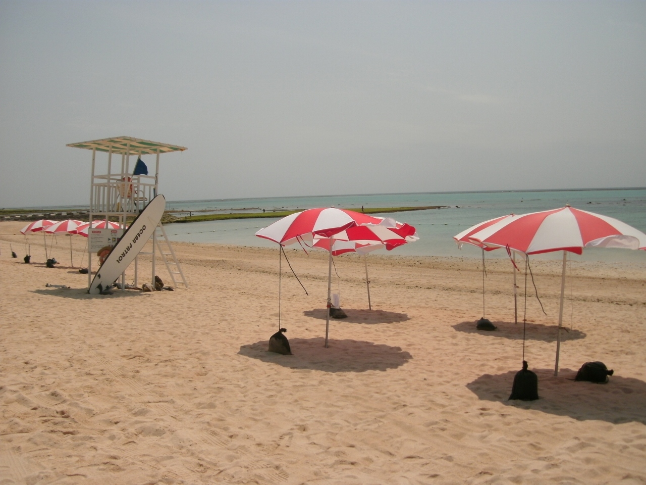 三度目の訪問です。残波岬ロイヤルホテルのビーチという感じですが、実際は道路を一本隔てていますので、誰でも自由に行くことが出来るビーチです。この日は天気があまり良くなく、海で遊んでいる人も殆ど居ませんでした。駐車場も無料だし、設備やアクティビティも充実しているので、家族連れにお奨めのビーチです。