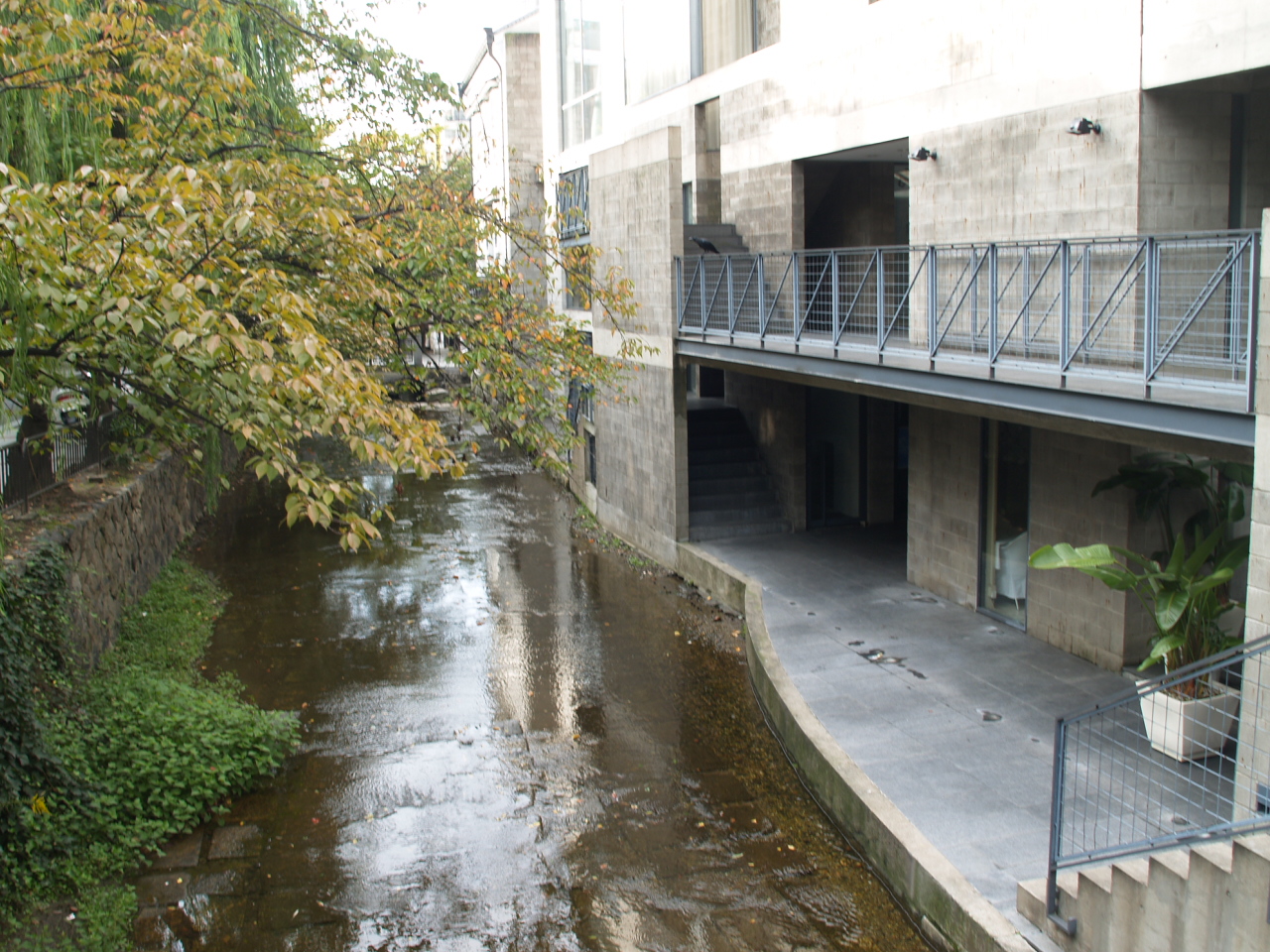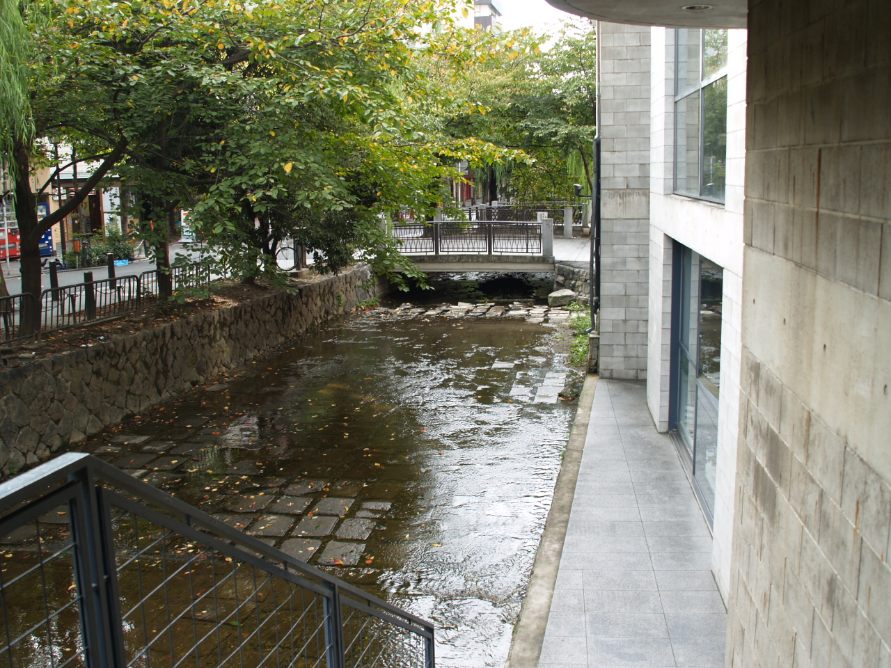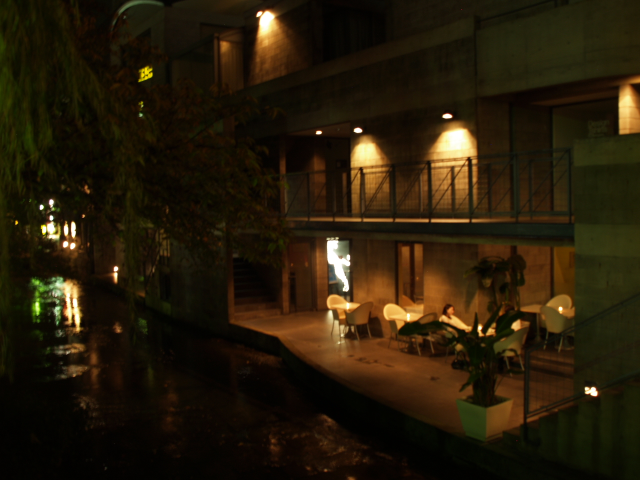 お金があれば、ワインを飲みつつフランス料理を食べるのが格別。かつて建築関係を生業としていたので、神様的存在の安藤の作品では、手軽に楽しめるスポット。高瀬川の水音を聞きながらの食事は、各別かと思う。柳の木が川べりに植えられており、夏の夕方も風情があると推測される。何度か通りすがりに見たが、何時見ても風情があった。