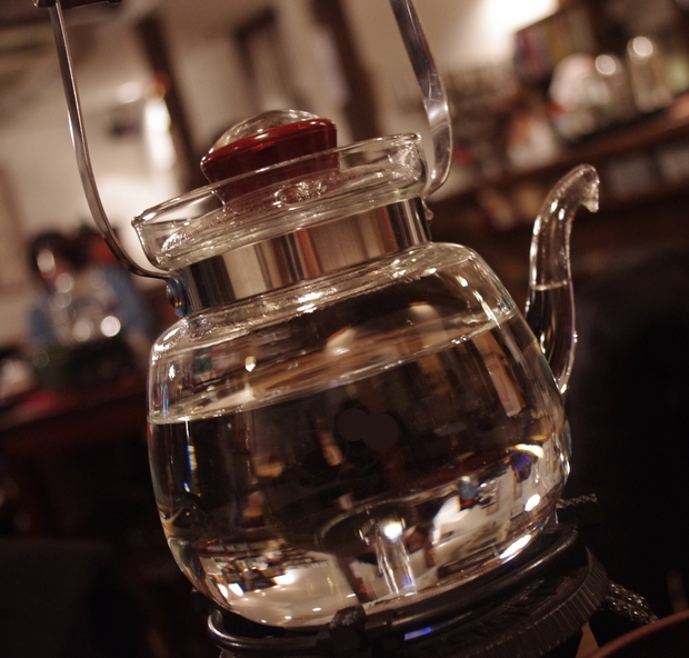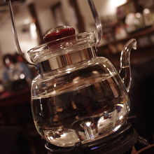 お茶は各テーブルにお湯をわかす装置とポットがありつねにお湯はブクブク!