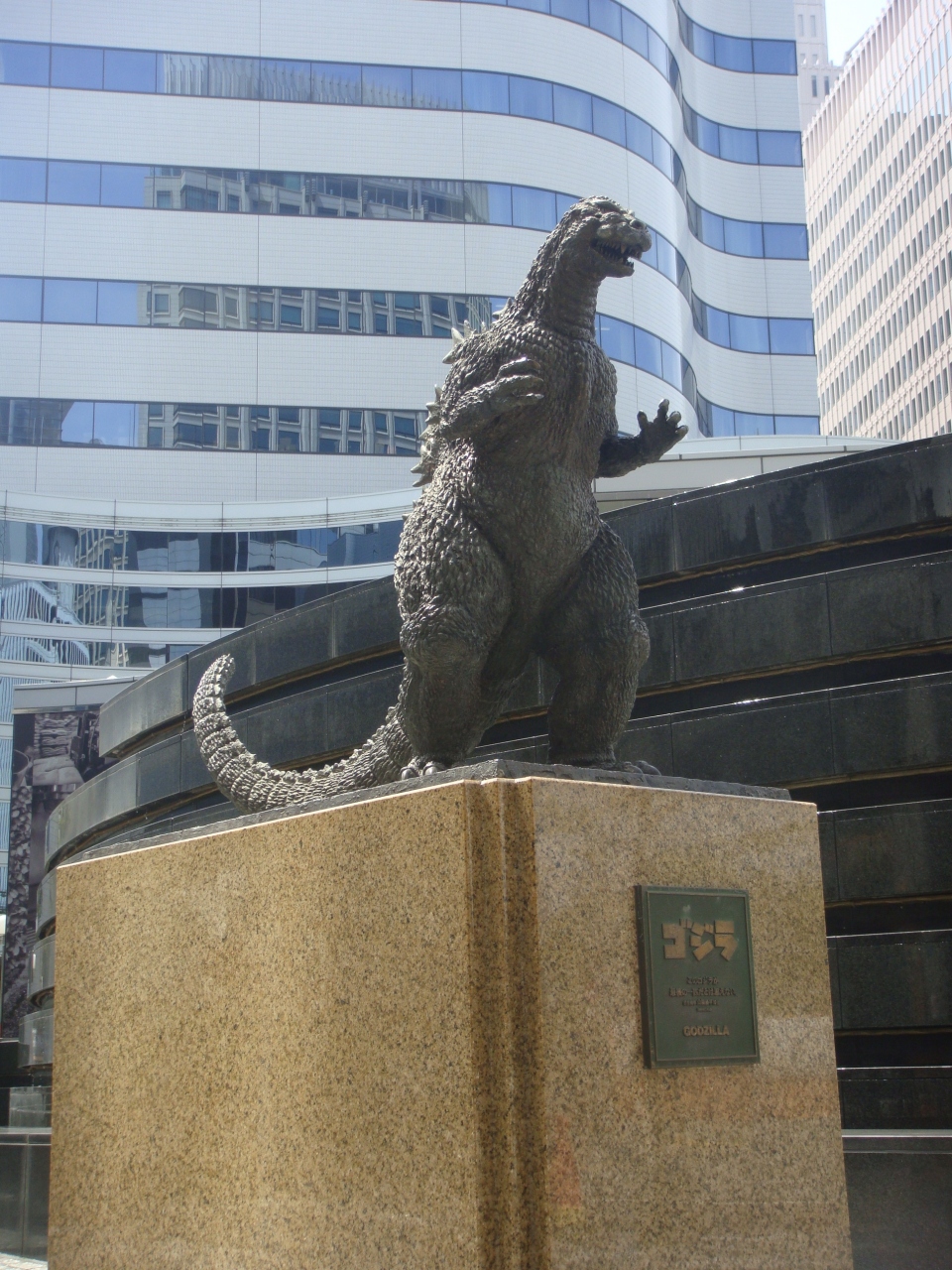 日比谷シャンテ前の広場のゴジラ像、近くには東宝本社があり、まさに「ゴジラ発祥の地」を示すモニュメントとなっています。また待ち合わせの場所にもなっており、多くの方が立ち止まっておりました。また近くには東宝スターの手形が貼られている「スターの手形広場」もあります。このモニュメントには「このゴジラが最後の一匹だとは思えない」と書かれておりました。