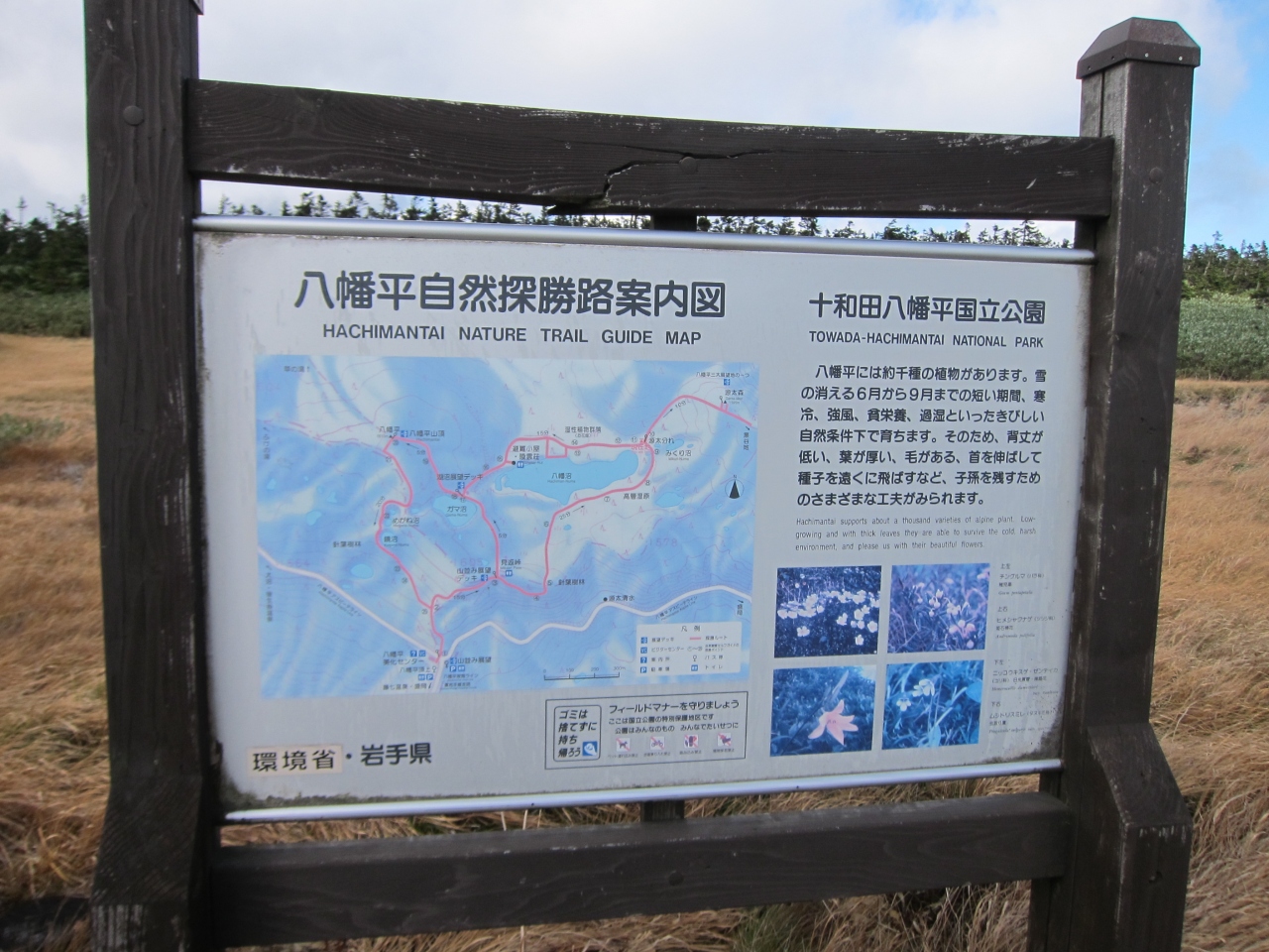 八幡平頂上バス停までは、秋田側からは田沢湖駅、岩手側からは盛岡駅からのバスで行くことができます。田沢湖からのバスの方は2時間少々で途中、休憩を挟みながら進みます。頂上にはバス停前にレストハウスがあり、食事やおみやげ購入、休憩ができます。山頂付近は、八幡沼、鏡沼、山頂を巡る遊歩道が整備されています。急な上り坂はほとんどありませんが、意外と距離があり2~3kmは歩くと思います。景色を観賞しながら行くので時間には余裕を持った方が良いと思います。