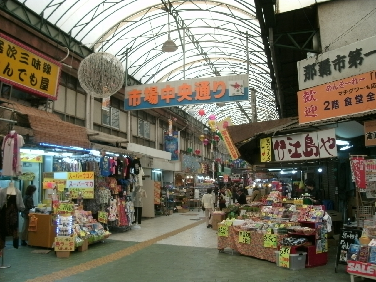 那覇の観光地、国際通りの那覇OPA角から第一牧志公設市場手前まで、約160メートルにわたって連なる商店街です。国際通り側の入り口付近は、土産物店が多いです。奥に進むと、土産物店や雑貨店、沖縄菓子店、衣料店などのいろいろな店が混在してきます。第一牧志公設市場の所で、市場本通りから市場中央通りに変わります。沖縄に来たら、お土産を買うために必ずブラブラ散策する通りで、商品を見ているだけでも楽しいところです。