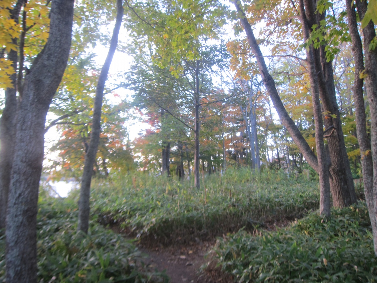 ボッケ遊歩道として案内があります。遊覧船の船着場からボッケまでの湖べりに1kmほどの平らな遊歩道で、船着場付近では雌阿寒岳、奥の方では雄阿寒岳が眺められます。ボッケからは森のこみちとして、エコミュージアムセンターの裏手の森の中の山道で1~20mのアップダウンがあります。途中、木々や自然についての解説板があり、国道脇の駐車場付近に出ます。特にボッケ遊歩道は、平で距離もちょうど良く、湖のほとりの散策にはうってつけです。
