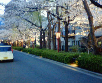 川沿いに桜が並び、また、昔風の街灯でライトアップされた道がどこまでも続くので、桜の時期は夜の散歩が楽しいです。