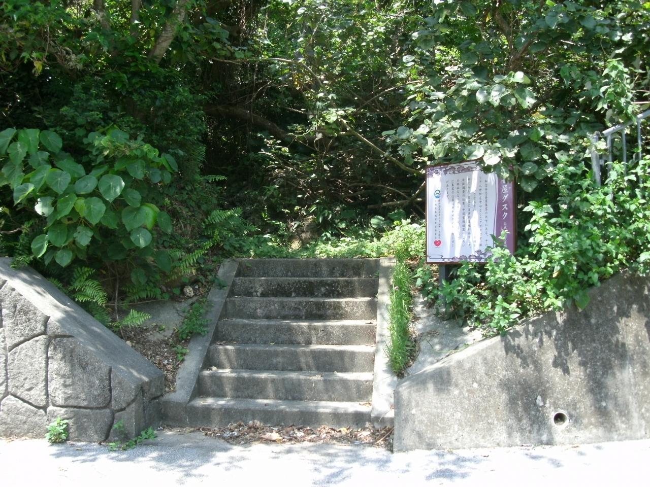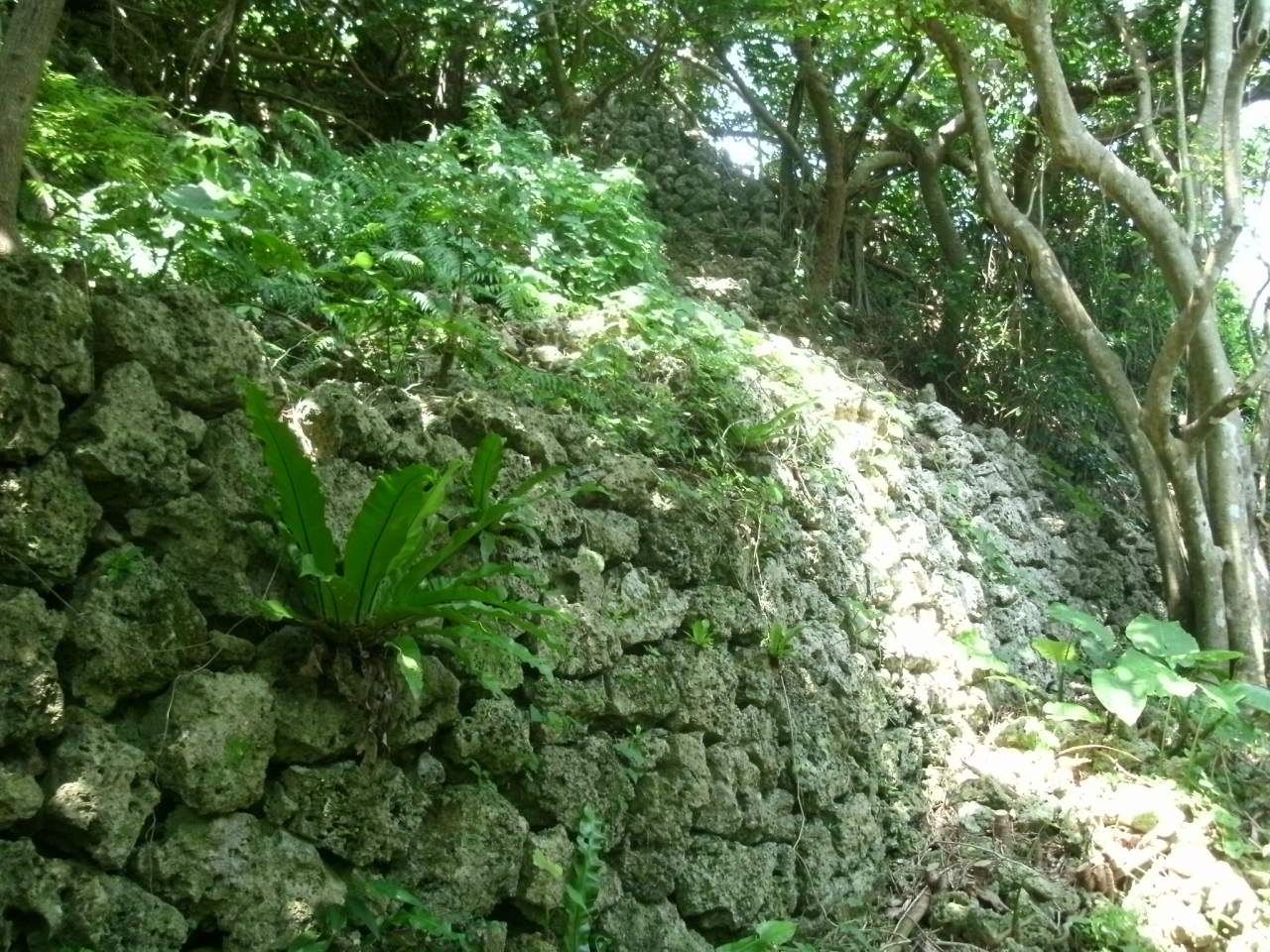 「志喜屋グスク」は、那覇からだと国道331号線を車で1時間ほど、南城市知念志喜屋にあります。志喜屋のバス停から、少し東に行くと国道沿いのフェンスで囲まれた一角に、志喜屋グスクはあります。入口に立てられた看板が目印になりますが、判りにくいので気をつけないと見落とします。志喜屋グスクは16~18世紀頃に築かれたらしいですが、詳しいことは判っていないそうです。比較的小規模なグスクは、くずれ落ちた石垣と、木々がうっそうと生い茂っています。グスク跡からは輸入陶磁器などが出土するそうで、南城市指定文化財に登録されています。まだ、整備されていないので、観光客が行くようなところではありませんが、歴史に興味のある方はどうぞ。