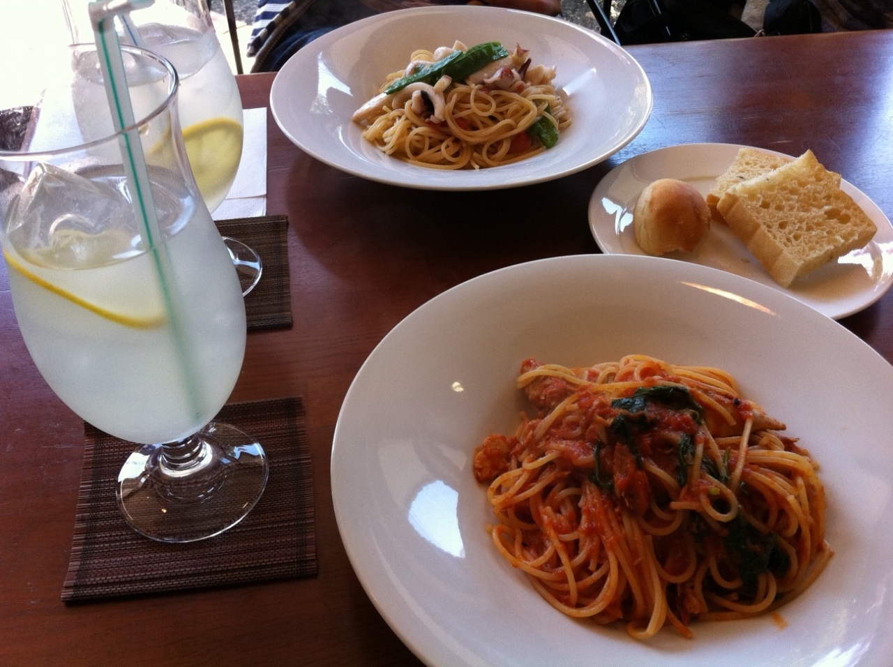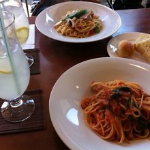 私は1260円のパスタランチを注文。前菜、パスタ、パン、ドリンク付き。
