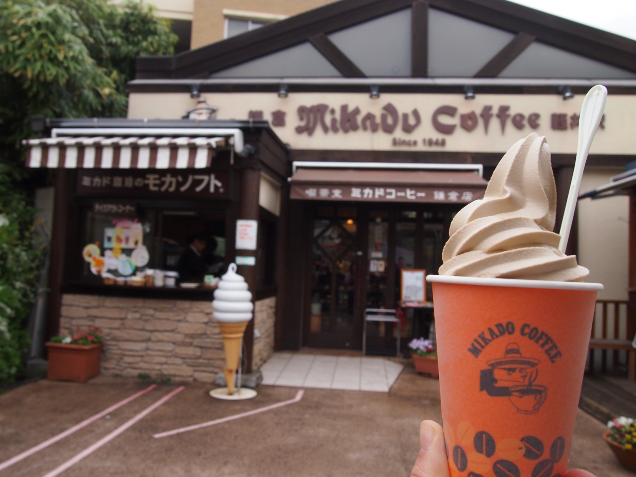 食べ歩きが楽しい鎌倉の小町通り。 鎌倉駅から歩いて、小町通りの後半あたりの場所を左折すると何軒かお店が入ってるエリアがあります。 たこ焼きとかも売ってるプレハブもあったりしますが、その奥に、ミカド珈琲はあります。
