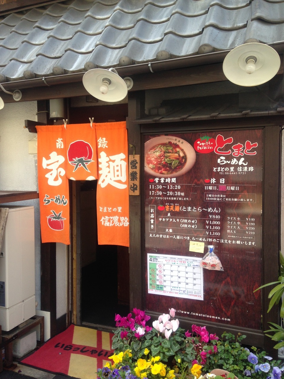 大好きな、とまとの里信濃路に宝天麺(とまとらーめん)を食べに阿波座まで行ってきました。12時半ごろついたので、一回転したぐらいだったのか、さほど並べずにはいれました。味は、ニンニクが効いてて、ややピリ辛で美味しいです。リピート確実です☆彡
