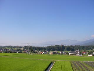 岡谷駅で飯田線に直通する電車乗り換えて、辰野から2つめの伊那新町駅で下車して、田園風景が広がるのどかな駅から、天竜川の向こう側に見える荒神山に向かって徒歩15分ぐらいで「湯にいくセンター」に着きました。
