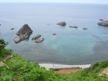国道229号線から道道913号線に入り、4キロほど走った所にある脇道を登ると駐車場があります。そこから狭くて暗いトンネルを抜けると島武意海岸です。日本の渚百選に選ばれている海岸で、積丹ブルーの美しい海を見ることができます。神威岬から見る日本海も素晴らしいですが、この島武意海岸も絶景です。