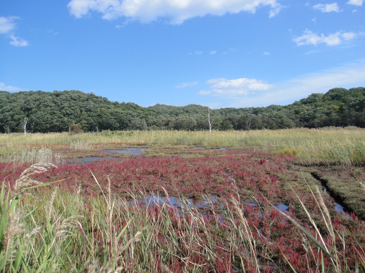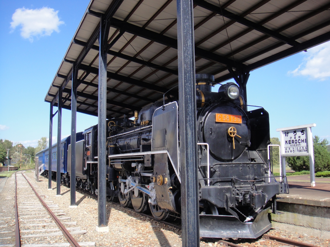 1987年に廃止された湧網線の計呂地駅の跡を保存したものです。SLやそれに連結した旧型の客車が残されています。客車には宿泊もできるようです(夏場の5月~10月)。保存用に整備されたようですが(古くてシックな客車に観覧用に手すり付きハシゴなどが取り付けられてしまっています)、更に年月がたち、さびれている感じです。平日の昼間だったこともあり、人影は見当たりませんでした。公園の奥がサロマ湖の湿地帯になっています。9月の終わりでしたが、ここにもサンゴ草がちょこちょこ生えて色づいていました。(サンゴ草はこの付近では、かの有名な能取湖、紋別のコムケ湖で見ることができます。)