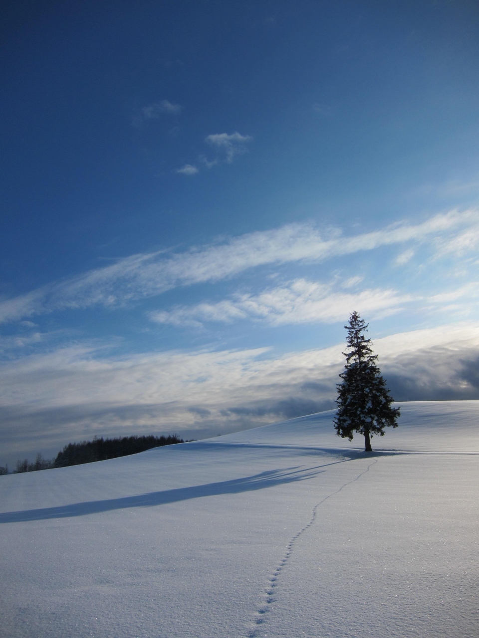 美馬牛の駅から2~3km北側にあります。何の変哲も無い丘陵の畑作地にあるので、付近にはお店などはありません。冬の休日に行きましたが、時々団体客が観光バスで訪れたりしていました。お店など休むところがなかったのが残念ですが、何も無いところに観光ポイントがあるのが富良野らしいです。