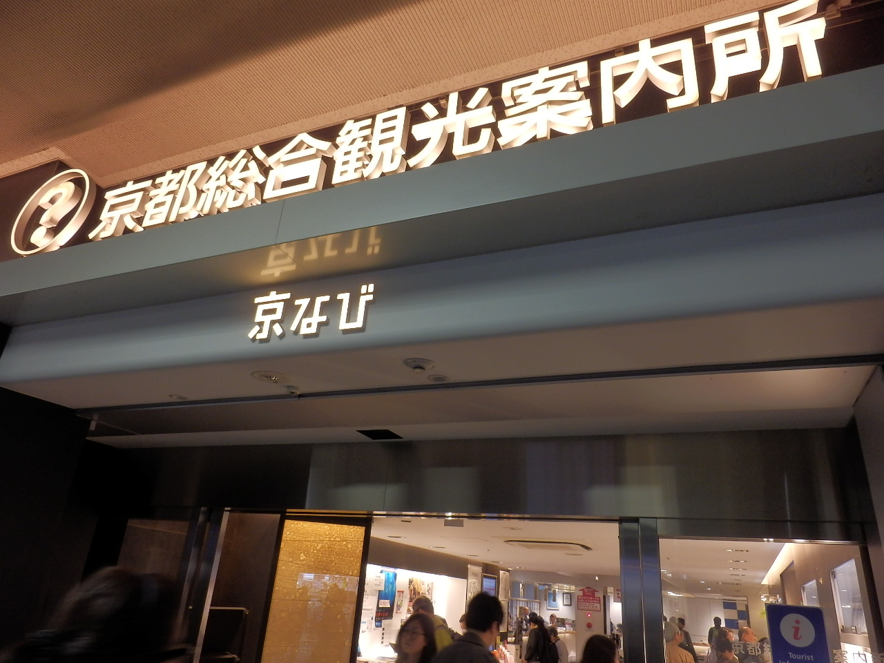 JR京都駅の駅ビル2階、伊勢丹の隣にある「京なび」と愛称のある観光案内所です。明るい室内で、入って右手の壁にはポスターやパンフレットがずらりと並んでいます。左手のカウンターにはスタッフが並び、それぞれ対応可能な言語が表示してあるので、外国人にも優しい観光案内所だと思います。