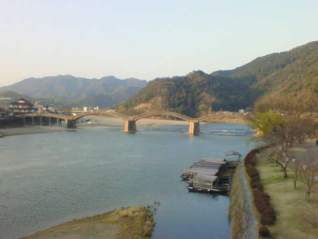 岩国駅からバスで20分くらいで到着。錦帯橋の下を流れる幅の広い川です。