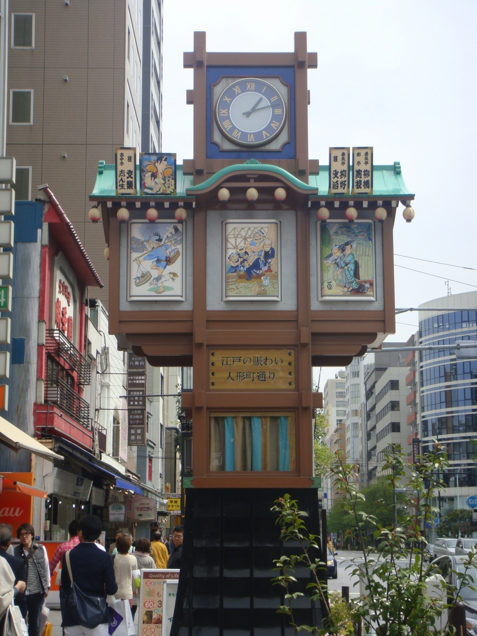 人形町商店街に誕生した「からくり櫓(やぐら)」は11時~19時の、毎時00分になると動き出します。櫓は通りを挟んで2台が立っており、水天宮前駅から人形町駅に向かい、右手に落語版、左手に火消し版があります。それぞれの仕掛けが動き人形が現れて、楽しませてくれます。