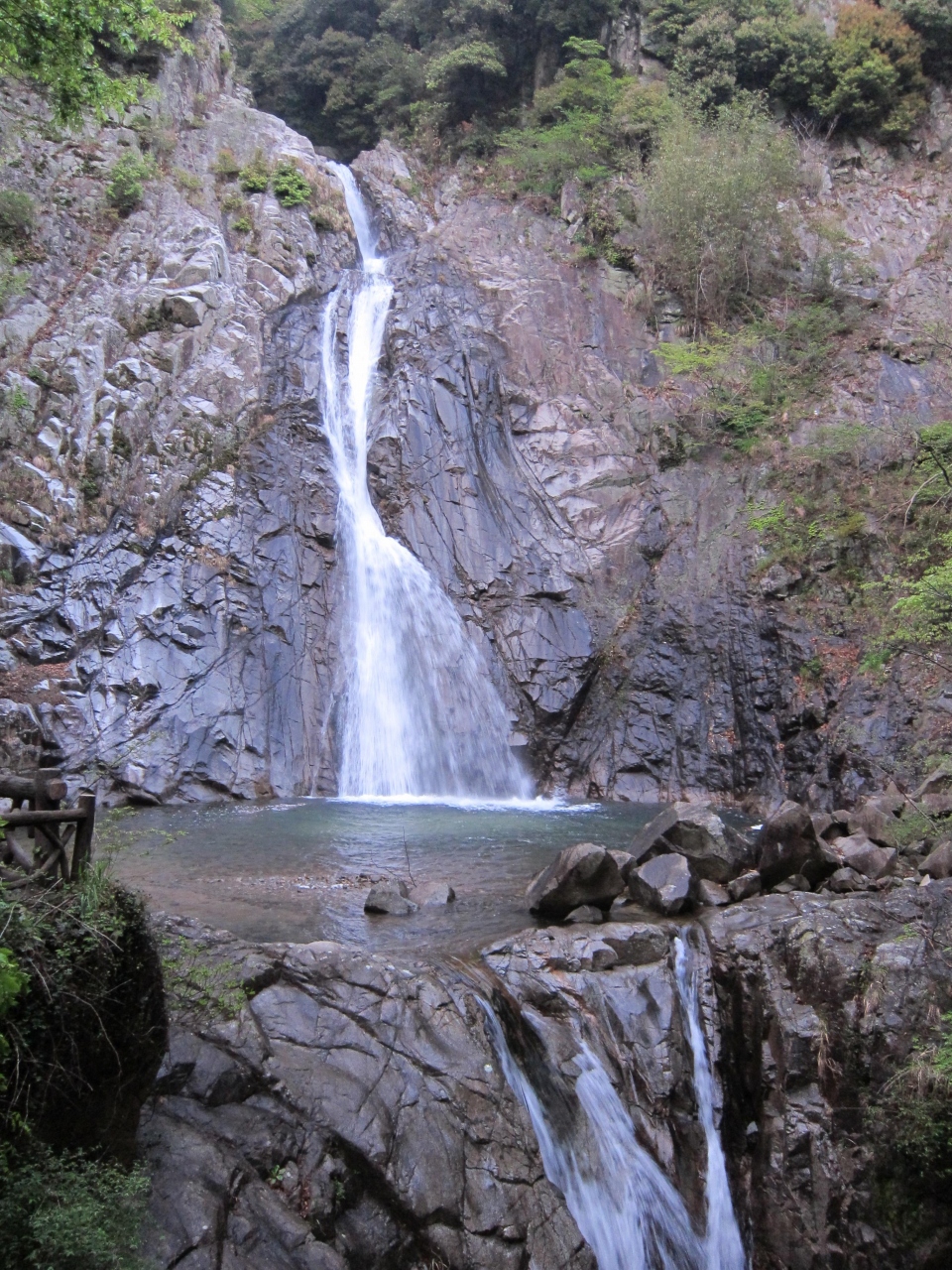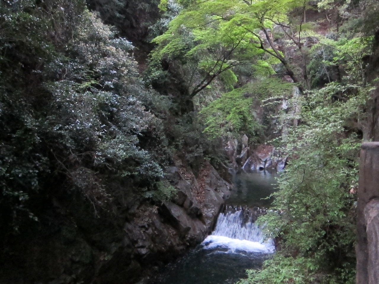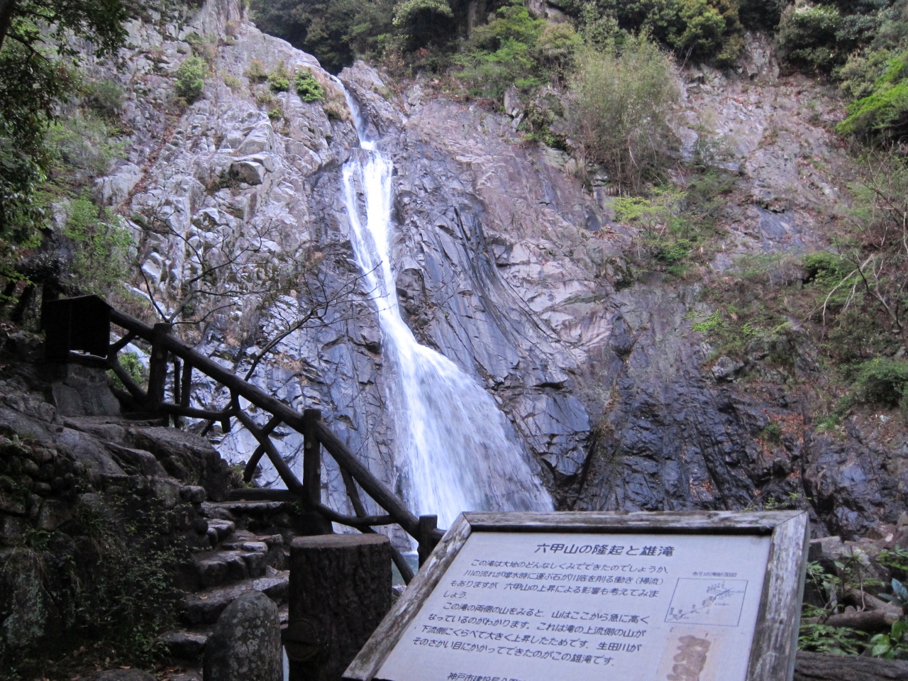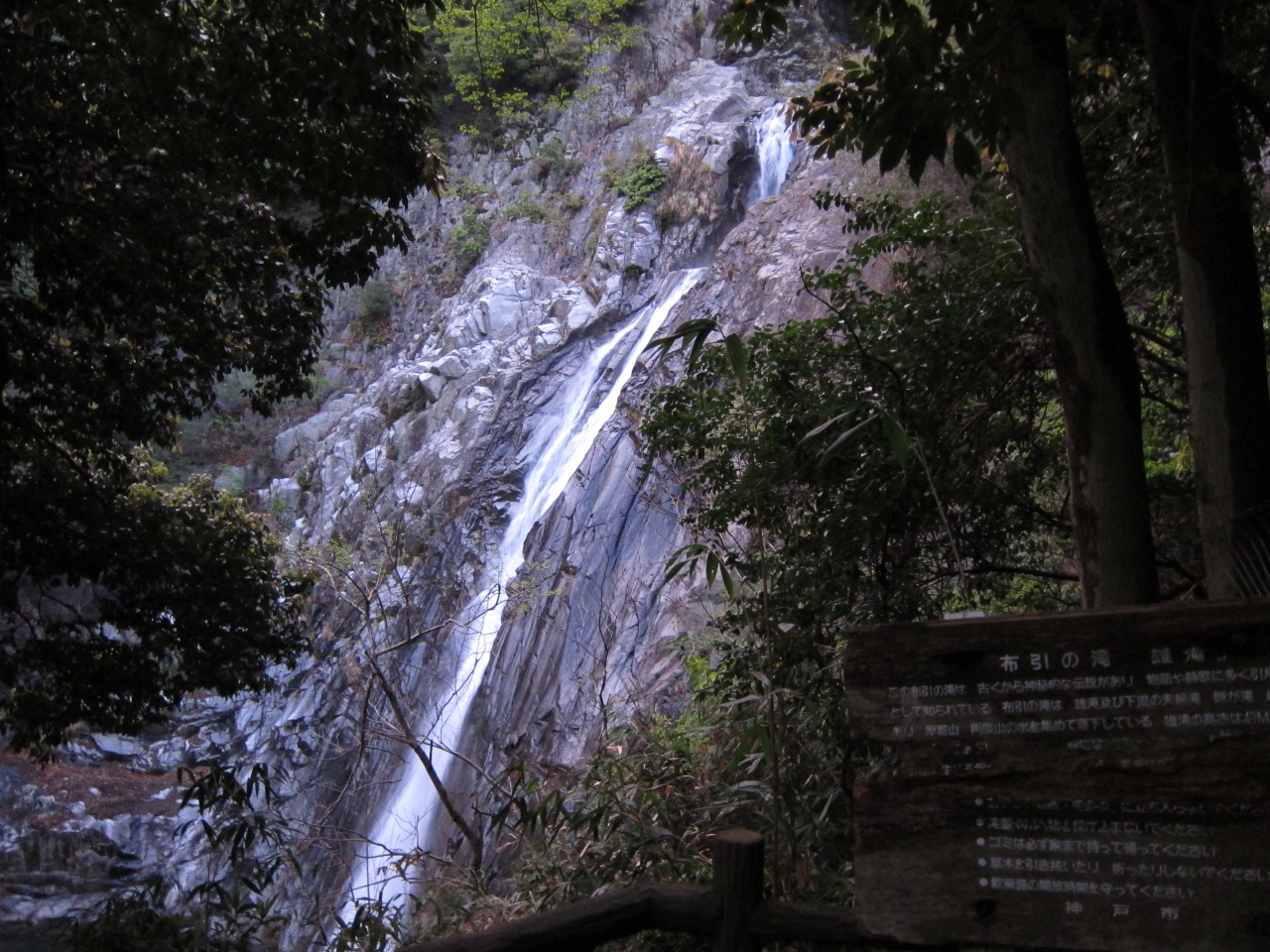 新幹線の新神戸駅のすぐ近くです。新神戸駅から徳島までの高速バスの待ち合わせの合間に見てきました。駅の山側すぐ横が布引の滝から続く渓谷となっていて、排気ガス漂うバスプールのある駅の高架下に清流が流れ込んでいます。マイナスイオンの清々しい空気が流れ込んでいて、高架下なのにその付近だけは爽やかです。布引の滝へは階段と傾斜のある遊歩道が整備されていて、渓谷沿いを登った先にあります。それなりの坂を登るので10~20分かかりました。細布のかかったようなきれいな滝が見れます。また、真上をロープウェイが通っていますので、上空からも眺めることができます。上空からはやや小さくなってしまって、滝に関しては迫力にかけます。