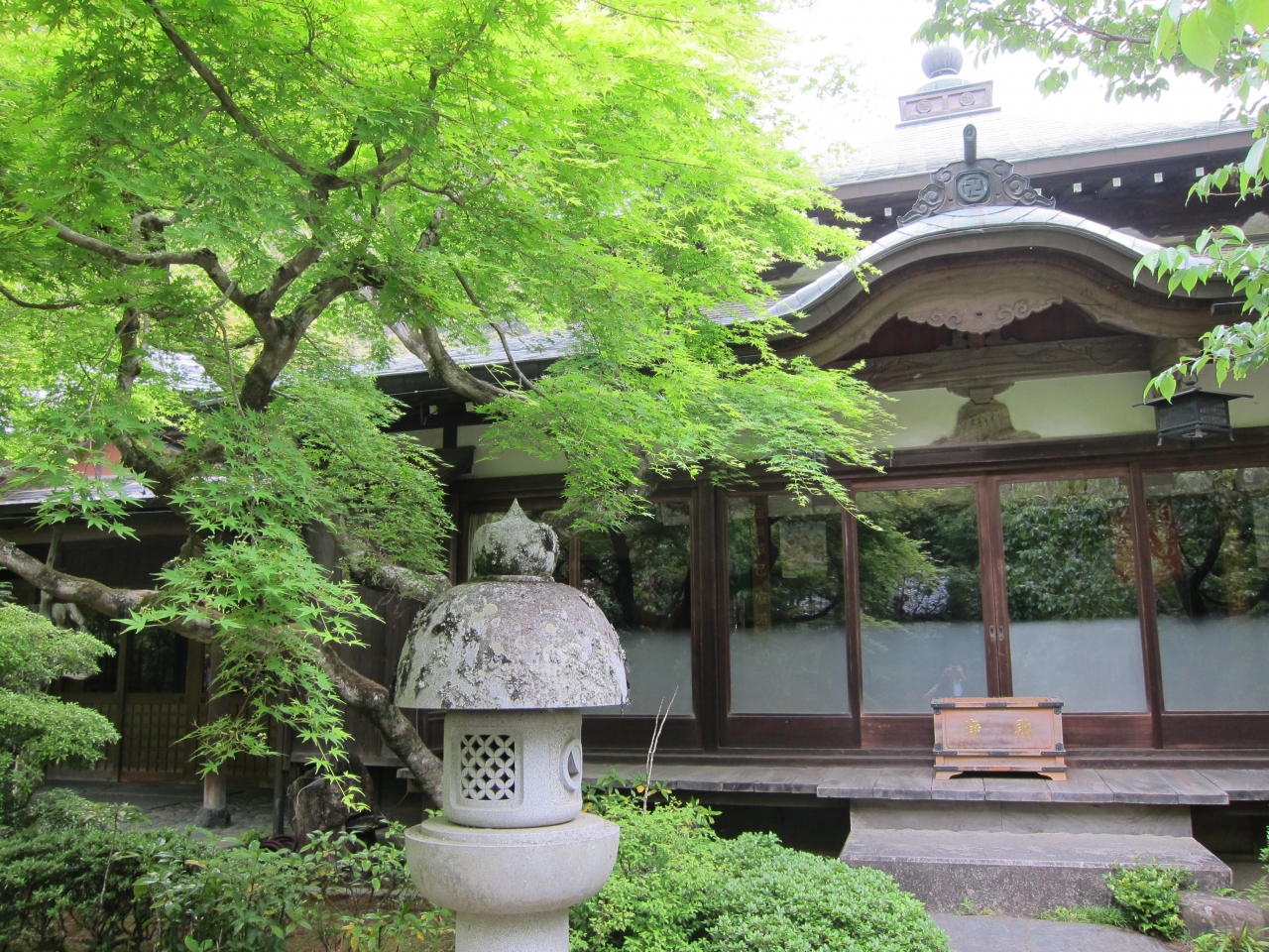 徳島駅の南側7~800m、駅前のメインストリートを行き、眉山ロープウェイ駅(阿波おどり会館)の手前で左に折れたところにあります。近くにはホテルが何軒かあり、泊まった際、朝の散歩ついでに行きました。庭園がきれいな小さなお寺です。庭園は拝観料300円ですが、庭園の周囲でも結構きれいでした。