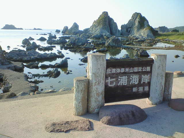 佐渡島の西部にある、荒い岩場が並ぶ海岸です。