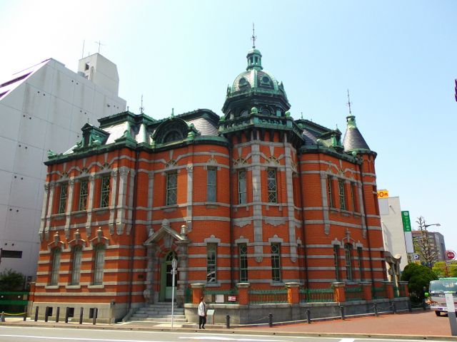 福岡で一日時間が空いたので天神界隈を散策しているときに出会いました。天神駅と中州川端駅の中間の川沿いにあります。一目で目をひく美しい建物で、赤煉瓦がJR東京駅に似ているなあと思ったら、設計者が辰野金吾さんという同じ方でした。