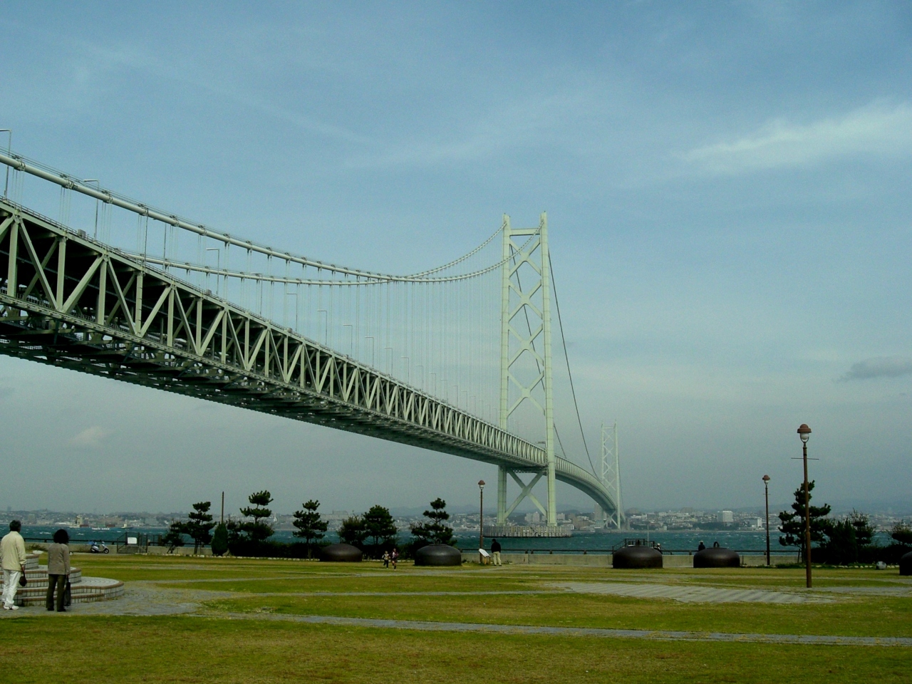 明石海峡大橋を渡り、一路淡路島に向かいました。高速のインターを出て、島の先端にある道の駅からも明石海峡大橋を広角度で捉えることができます。神戸側とはひと味ちがう橋の佇まいが感じられました。ゆっくりと食事をして、帰りに土産物店に行き、名物の玉ねぎが安く売られていました。