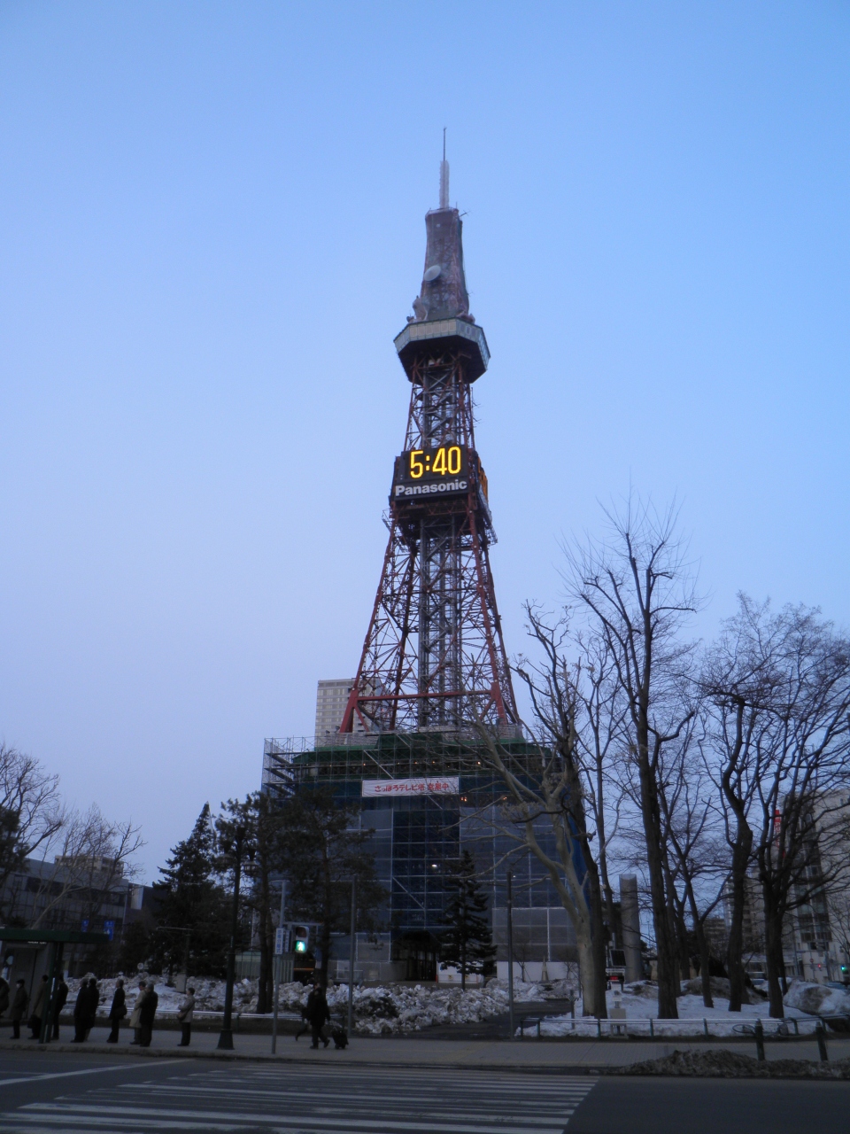 札幌の大通公園にあるさっぽろテレビ塔は、塗装塗り替え工事に入っていて足場が設けられ、下の一部が幕で覆われていました。3月01日~6月15日の予定で、4月17日から26日までは、展望台も休業するそうです。塗装工事があると感じが変わることがあるけど、今回はどんな姿になるのか? とっても楽しみです。