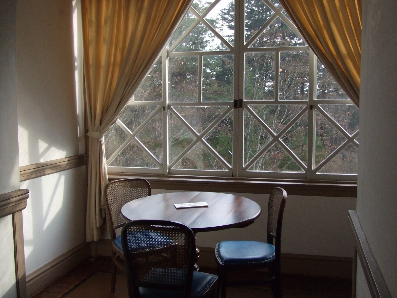物書き机や暖炉がそのまま残されていました。照明も味のあるレトロな雰囲気でした。