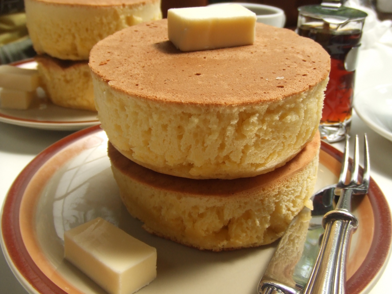もっちり系ではなく、空気を含ませてしっかり焼き上げたタイプ。「パンケーキ」とはまた別物です。