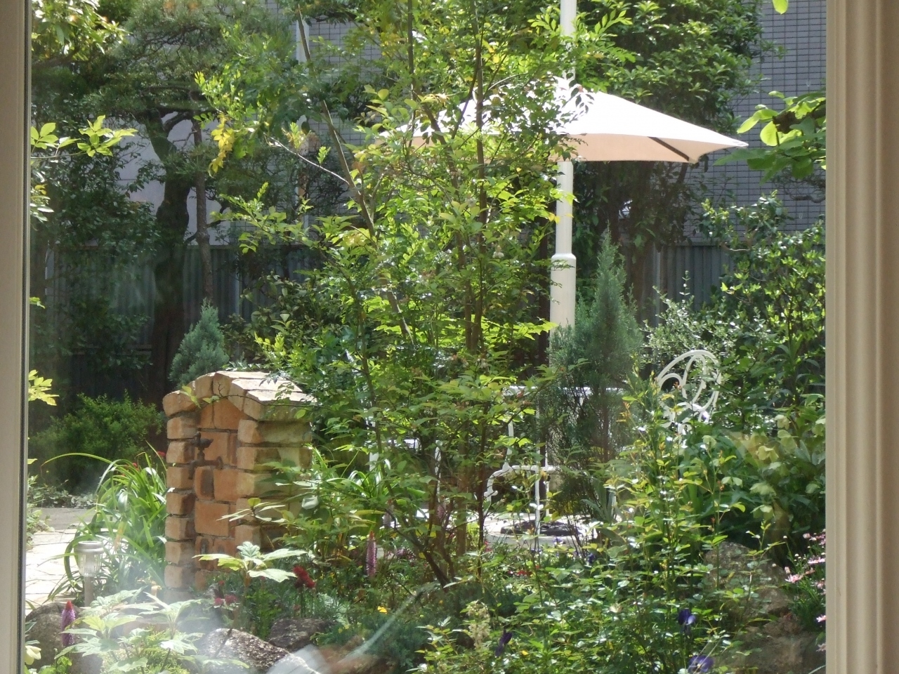 前にお客さんが10名弱ほどいたっけな。中庭の見える席に案内されました。