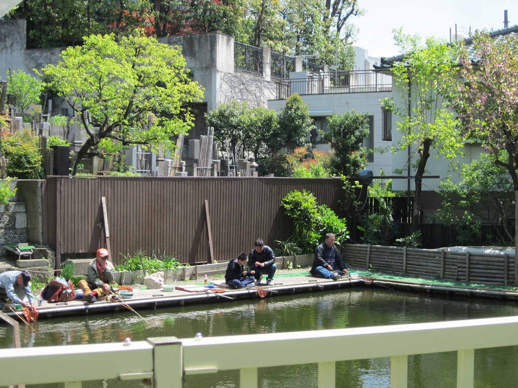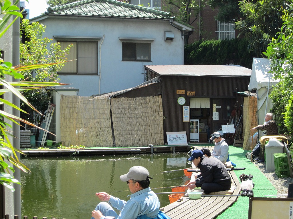 民家や墓地、マンションなどに囲まれた小さな釣堀ですが、港区観光協会の「港区老舗・おすすめの店100選」には、「都会の超穴場的な釣り場」「人に教えるのがもったいない遊び場」などと掲載されています。餌も貸竿もありますので、手ぶらでも大丈夫です。