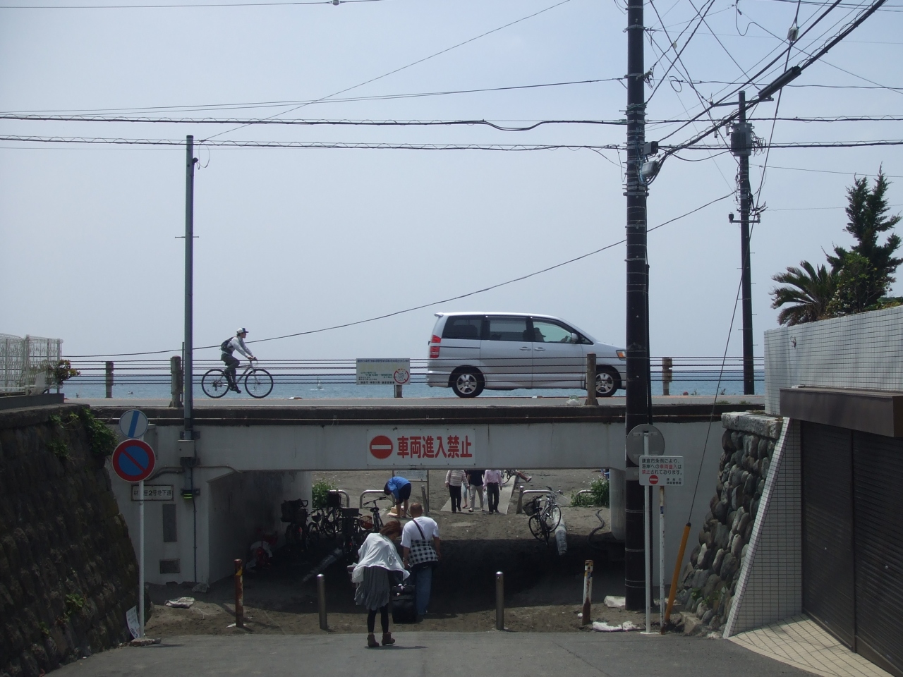 民家の間の道を歩いて行くと、だんだん潮の香りが強くなってきます。さらに歩くと急に道がぐーっと下がり、そのまま砂浜へつながっていきます。