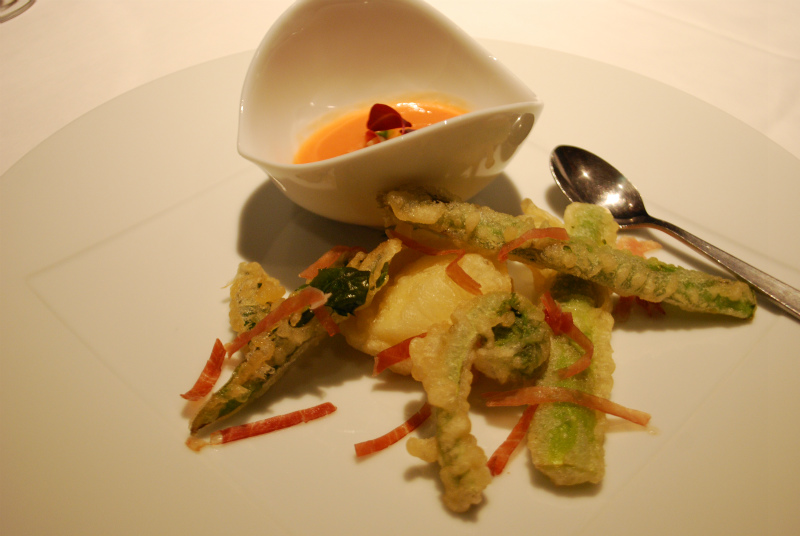 春野菜のほろ苦いピューレとそら豆のサラダ添え
