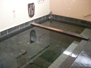 ぬるゆの名の通り、38度の源泉が浴槽に敷き詰められた玉石の間だから注がれて、床の上に溢れています。隣の上がり湯は、少し加温されているようですが、ほとんど温度は変わりません。