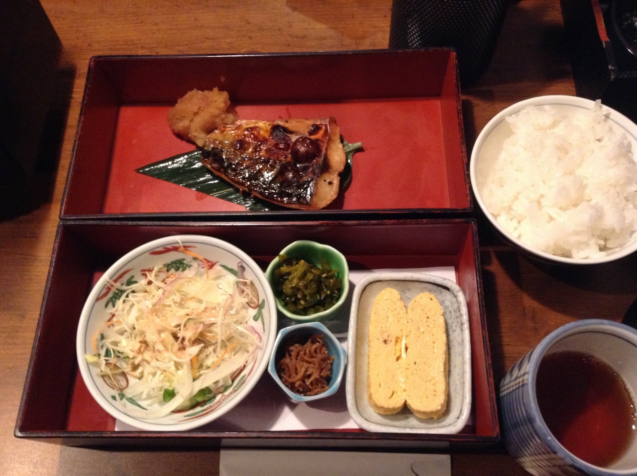 梅田スカイビルの地下には昭和レトロな大阪の街並みを再現した滝見小路と言う地下食道街があります。『みやけ』は、滝見小路にある和食屋さんです。ランチは焼魚弁当800円からで、照明を落とした落ち着いた店内で、御飯と味噌汁はお代わり自由です。