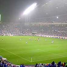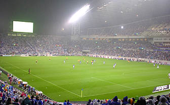 観客が6万も入る巨大スタジアムにも関わらず、フィールドまでの距離が近い。