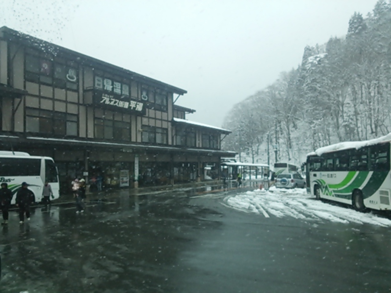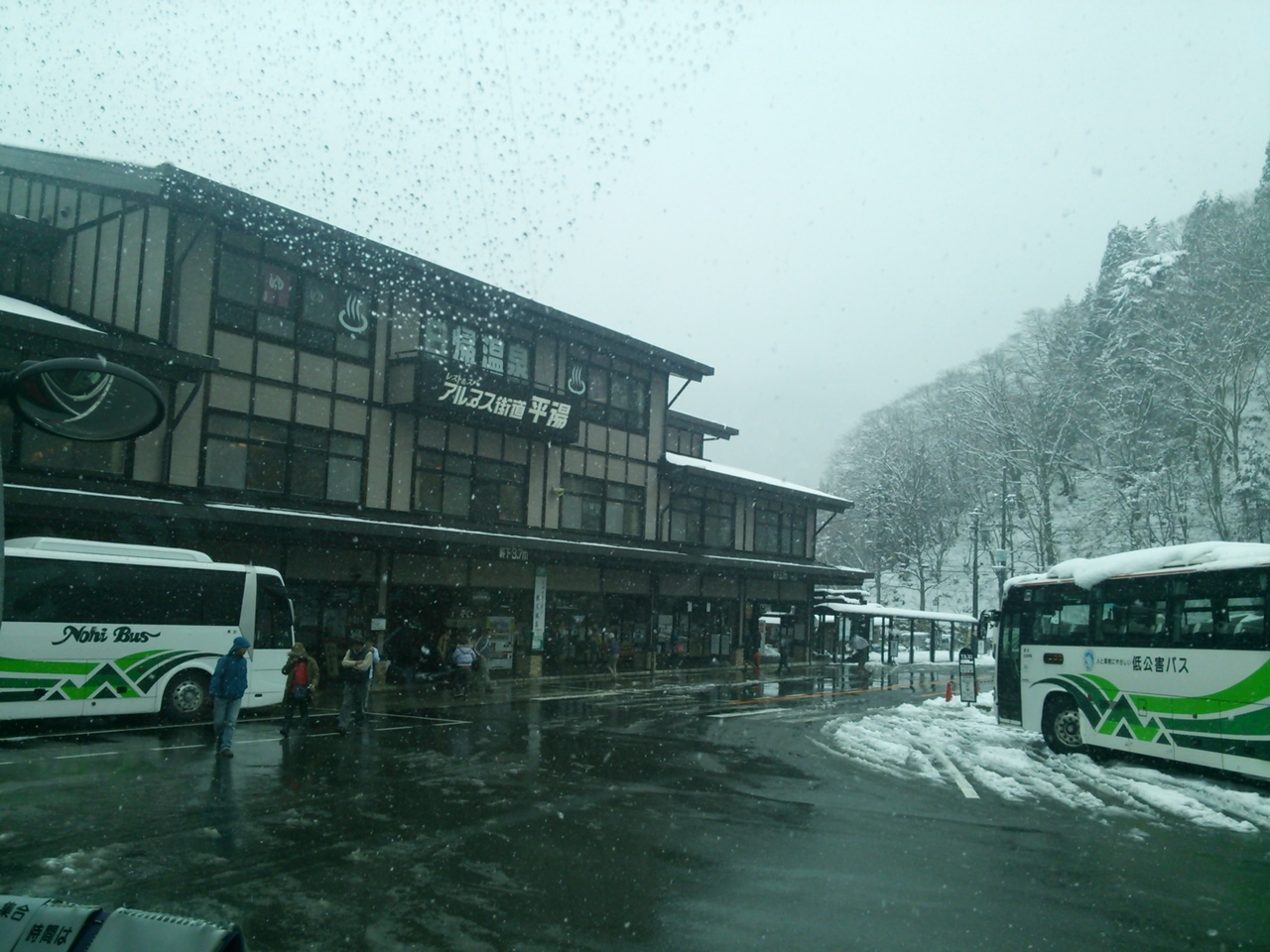 平湯のバスターミナルは、上高地、新穂高、松本、高山、新宿などバス乗り場ですが、ターミナルは、アルプス街道平湯というドライブインになっています。