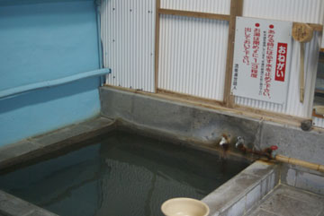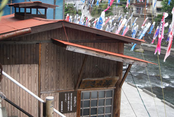 浴槽は、熱い源泉と水を調整して温度を調整するようになっていて、少し不透明で塩分が感じられます。先に入っていた地元の人は、県外に出ていて帰省中で、鯉のぼりのことを聞くと、町中総出で鯉のぼりの上げ下ろしするが、観光客で潤う旅館や商店と、一般の家があるので、難しいこともあるとのことでした。昔はもっと共同浴場があったが、だいぶ減ったということです。