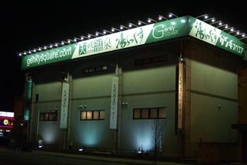 休憩室は、リクライニングチェアがあって、液晶テレビが付いています。前の方の席は液晶テレビがなくて、壁面のテレビを見るようになっています。テレビの音がちょっとうるさいですが、椅子はフラットに近くリクライニングするので、夜行列車より格段に仮眠が出来ます。駐車場があるので、酒を飲んだ後で休憩して酔い醒まして帰るのでしょうか、ほとんどの椅子が埋まっています。