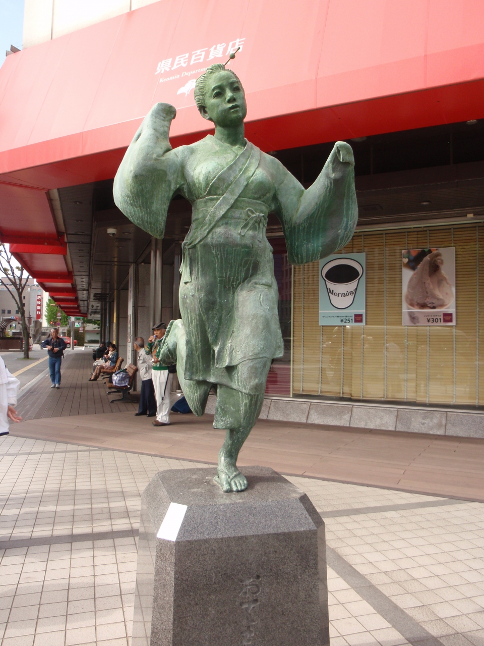 行ってみると、どうって事のない像ですが、路面バスや高速バスなどのターミナルである熊本交通センターのそばにあり、熊本城や熊本物産店にも近いので、ついでに行くには良いかもしれません。