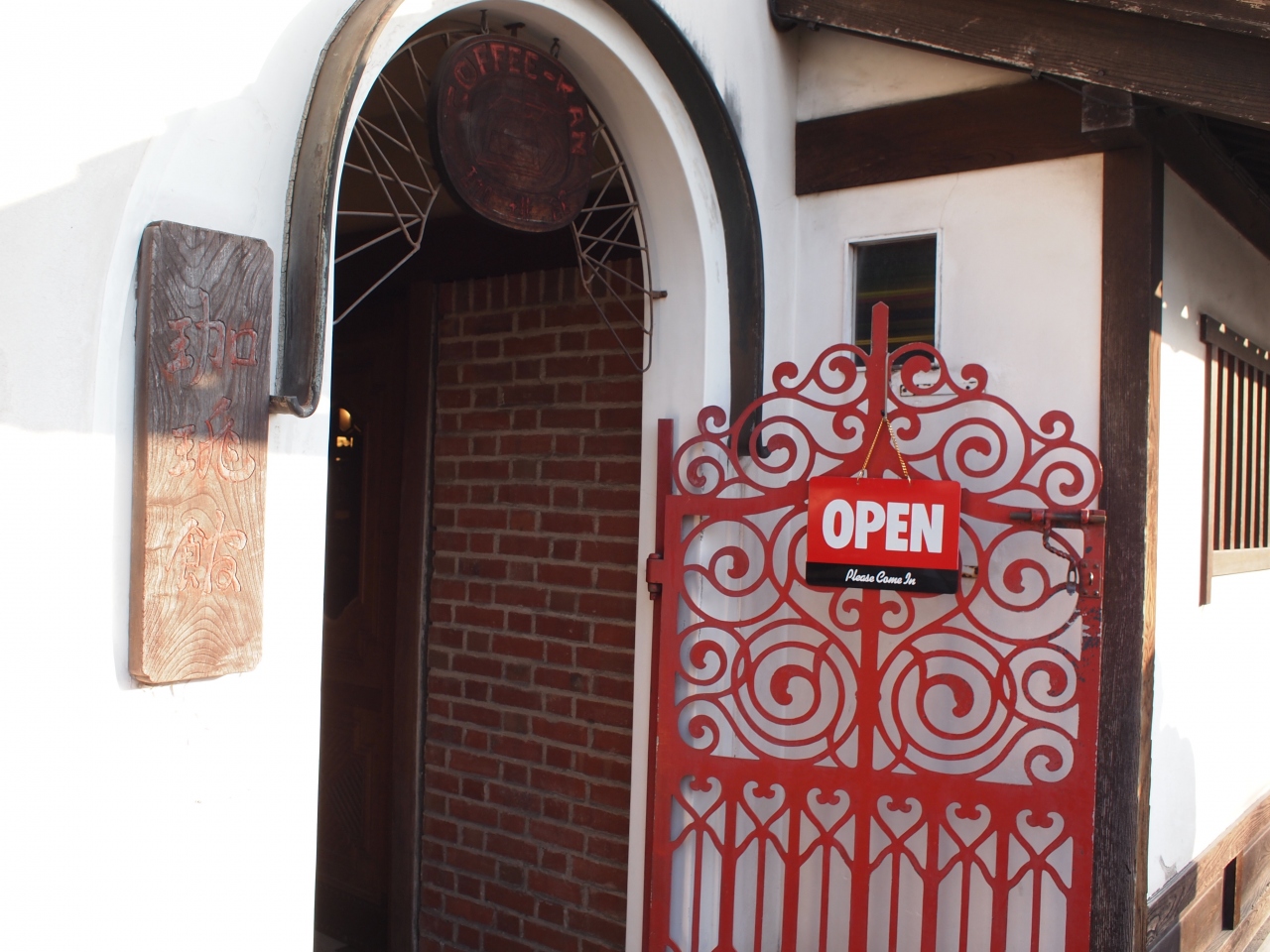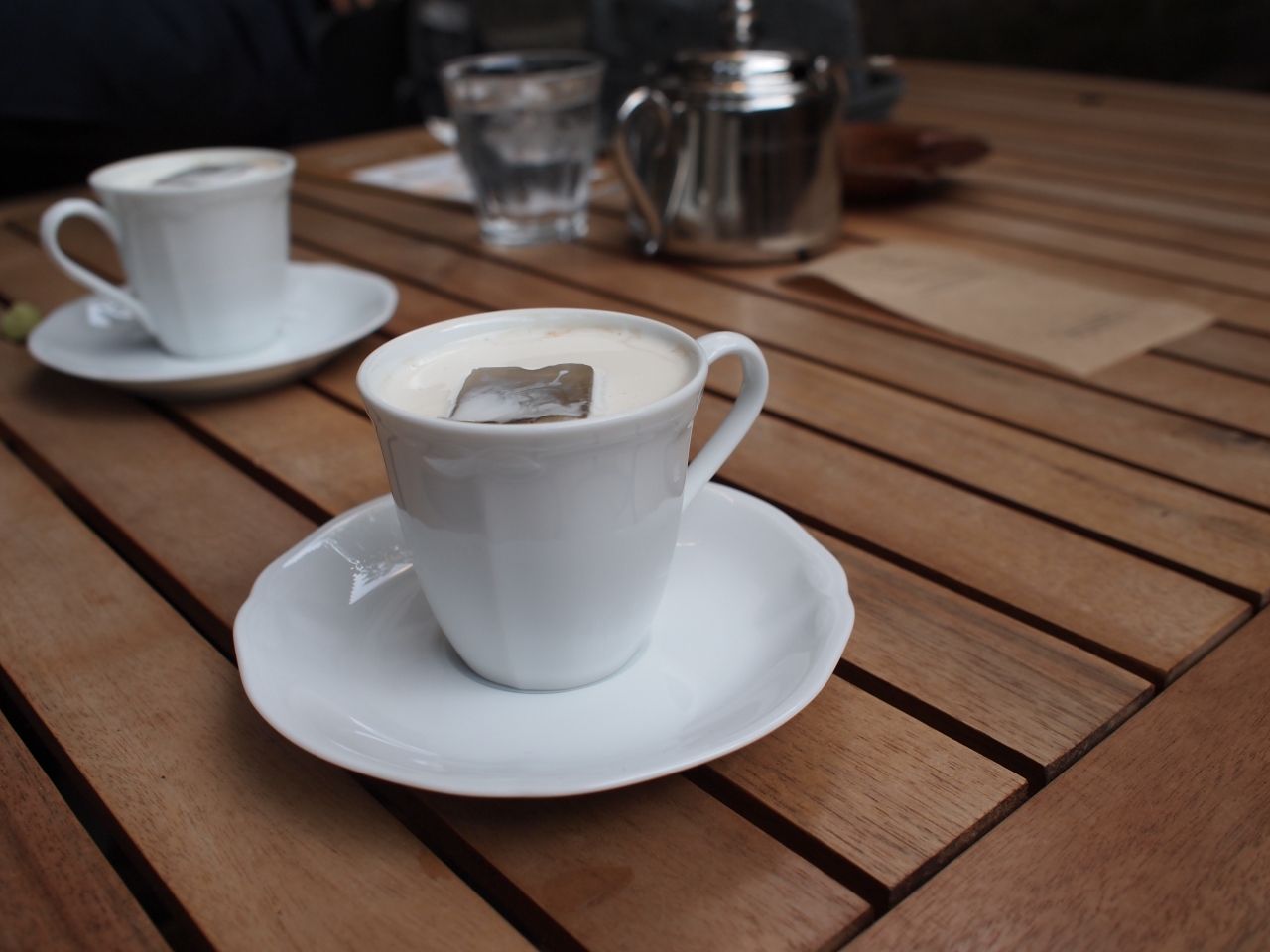 本格的な焙煎コーヒーの店で、かなり人気の店でした(外国人も多かったです)。レンガ造りのレトロな店内で珈琲を頂きたかったのですが、残念ながら中庭に通されました。色々な珈琲があるようですが、注文したのは1杯750円の琥珀の女王。水出し珈琲に生クリームやリキュールや蜂蜜が混ざり、大きな氷を1つ浮かべて普通のコーヒーカップで出されます。甘さと苦さが複雑に絡み合う感じで、ここでしか飲めないのかなと思いました。