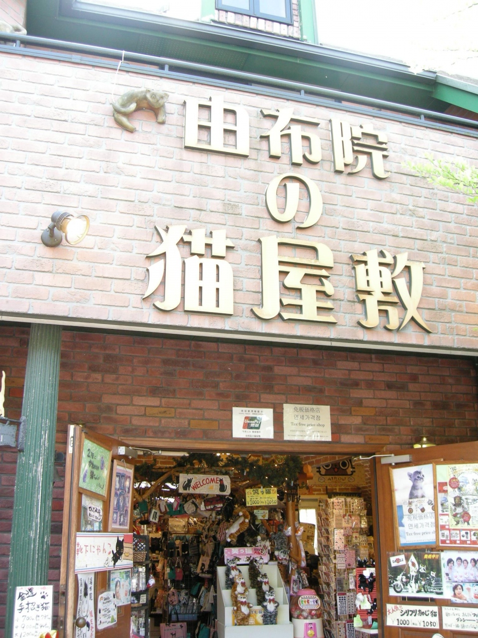 湯布院の湯の坪通りを歩いていると犬屋敷と猫屋敷が並んであります。