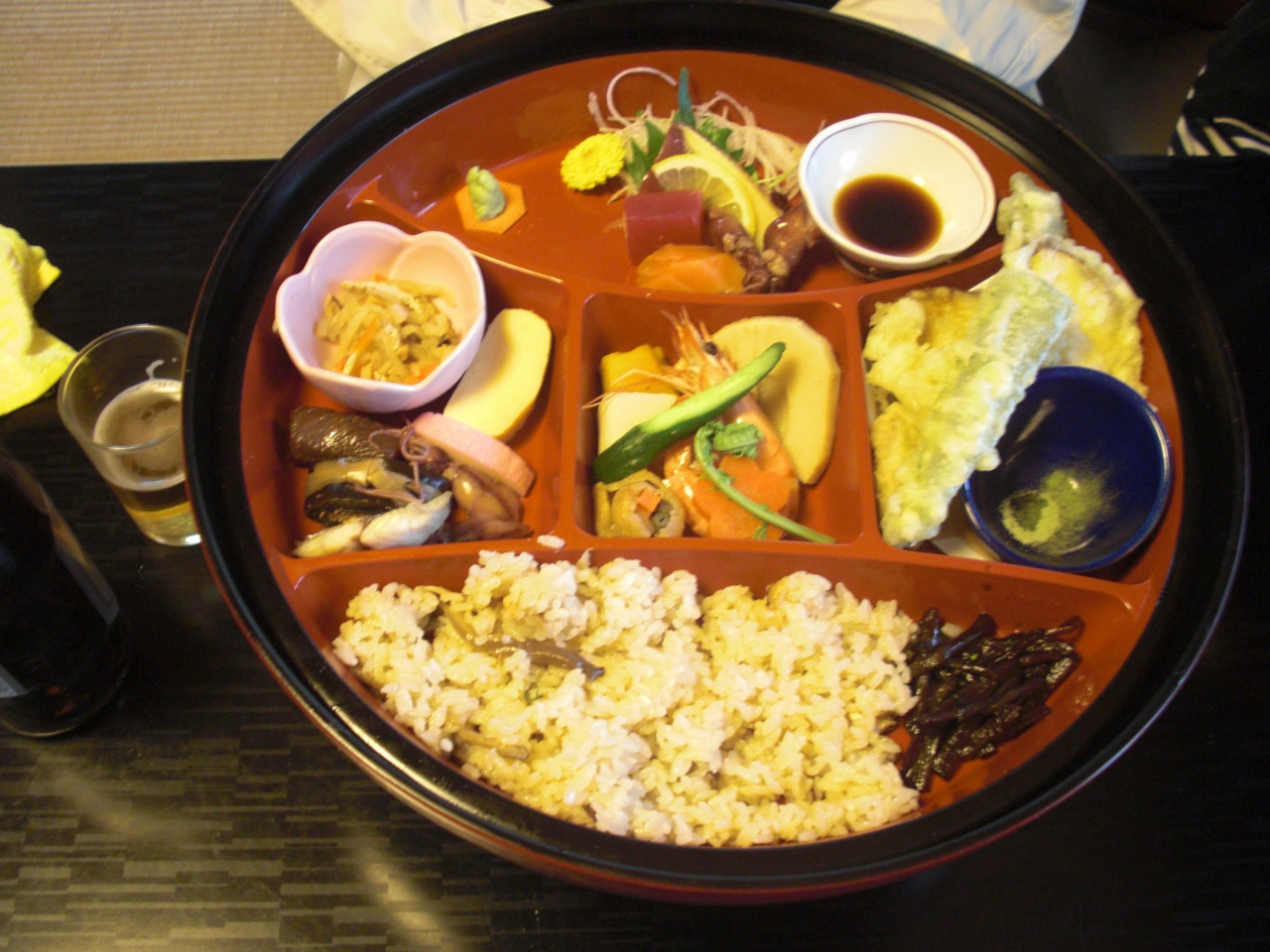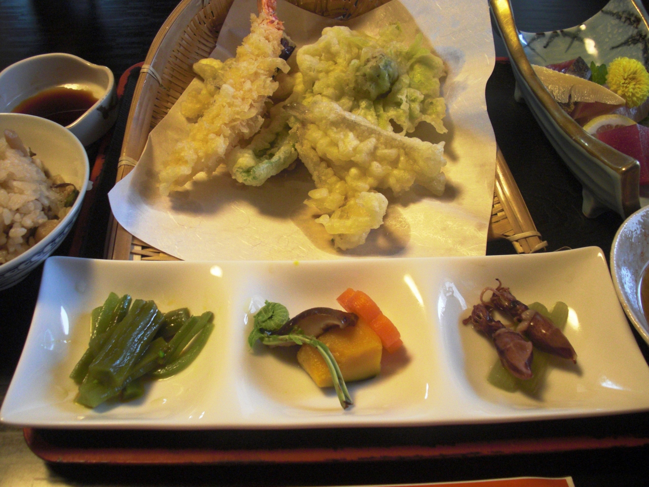 信楽陶器市の帰りにあばれ食いで有名な「魚松」へ。あばれ食いではないメニューを注文しました。大名御前はとても大きなお椀にお刺身やてんぷら、おばんざいに炊き込みご飯が入っています。少しずつですが、おなかはいっぱいになります。また炊き込みご飯は松茸ご飯でした。